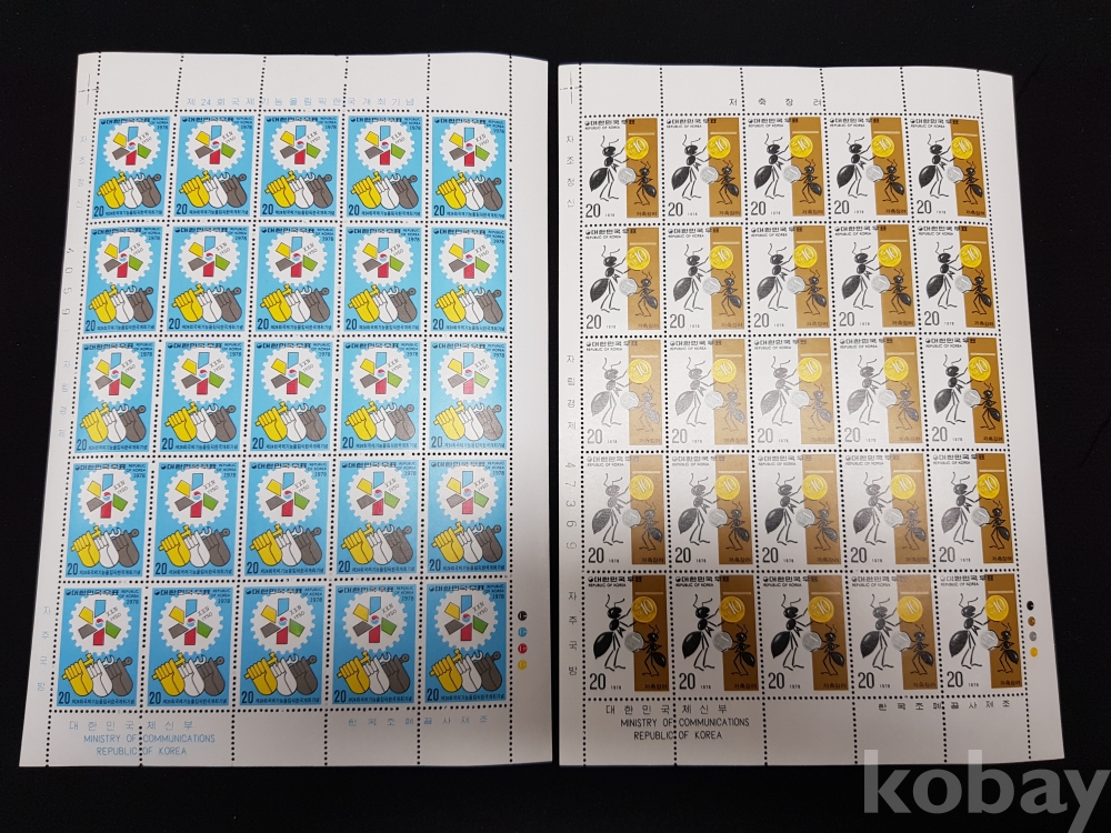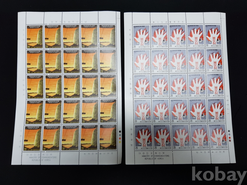 - 미사용 1970년대이후 기념우표 전지 5종 모음