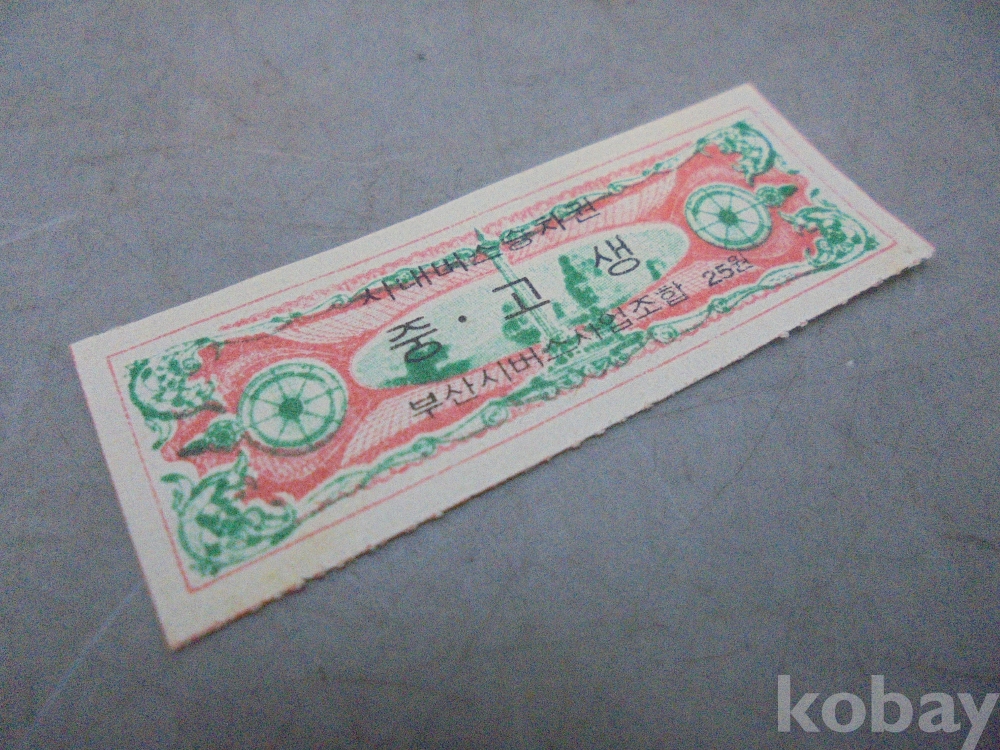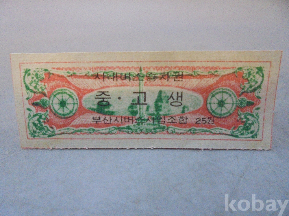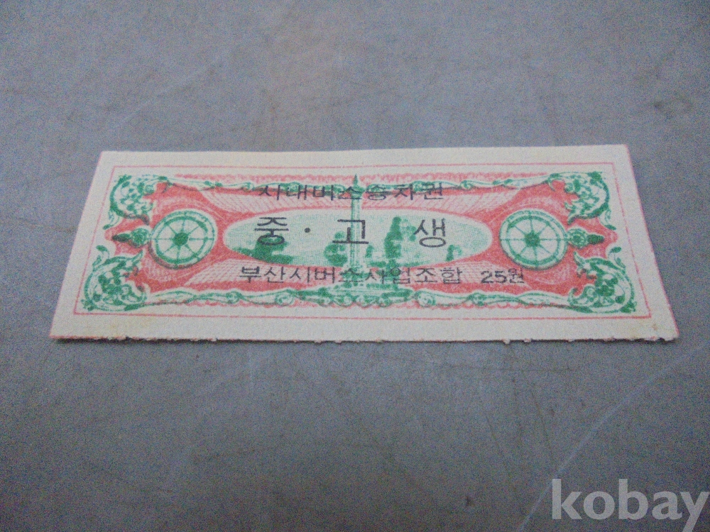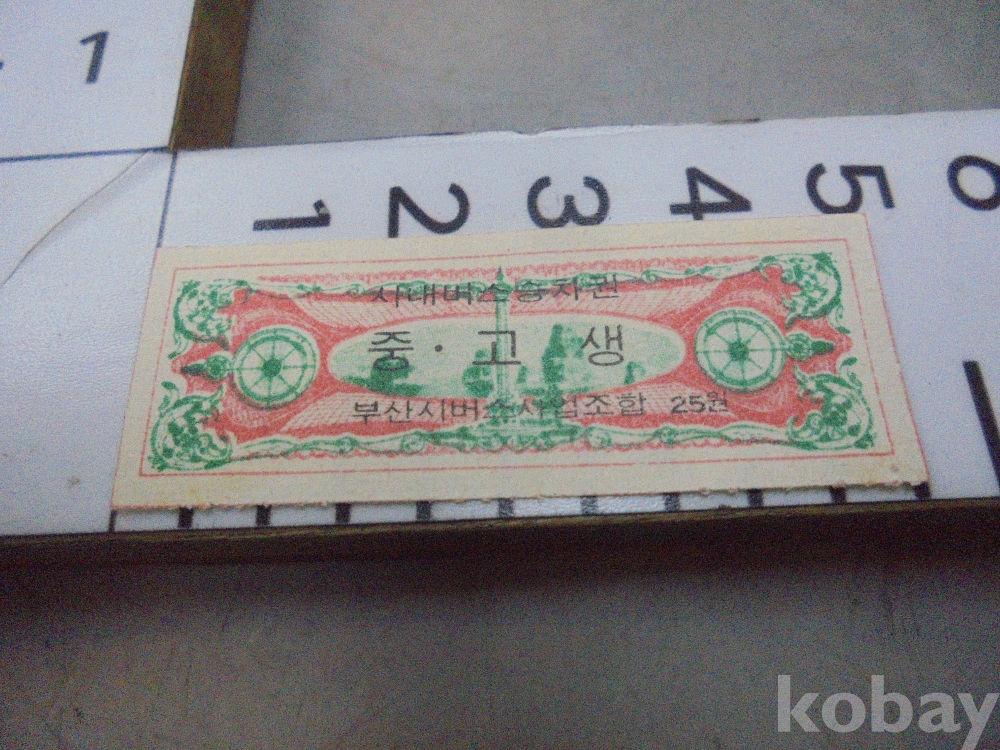 1975년 25원 부산 시내버스 승차권 미사용 입니다.