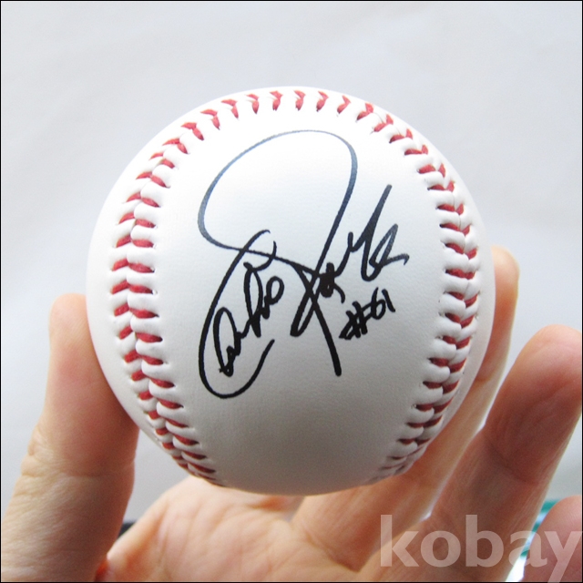 구성품 : 박찬호 캐릭터 인쇄 싸인 볼 1개 + 양말 2개 + 캐릭터 하늘색 비닐커버 세트