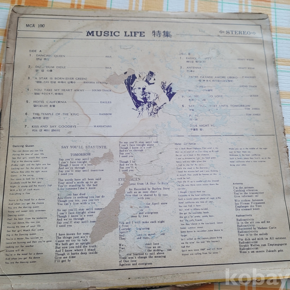 | 자켓상태 | VG : 주름, 접힘, 모서리 찢김 다수 | 음반상태 | EX : 재생에 영향 없는 가벼운 기스 존재 | 발매정보 | 알수없음 | 가사지여부 | 무 |