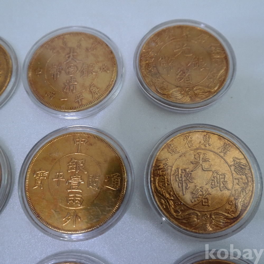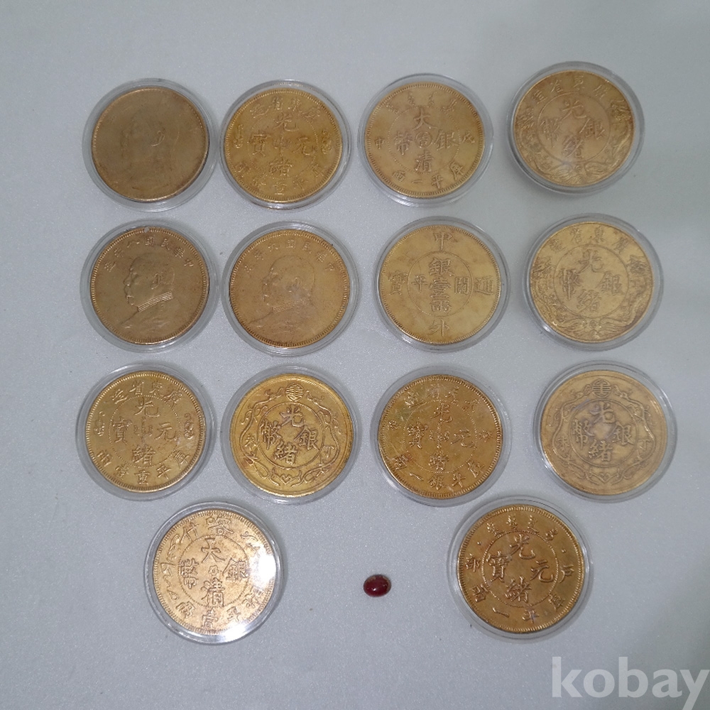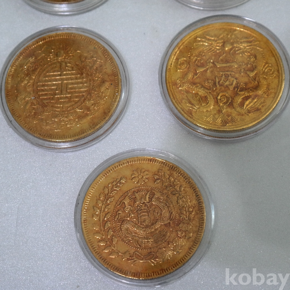 옛날 동전을 재현해서 만들어진 글자나 문양이 각기다른 동전 14점 입니다.