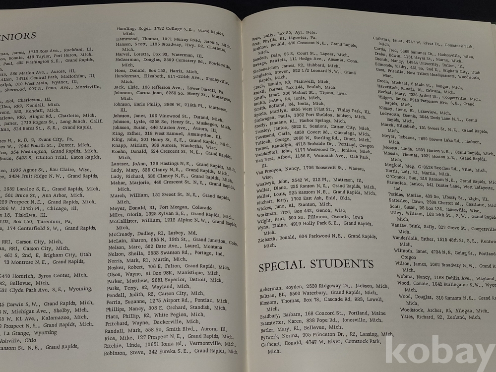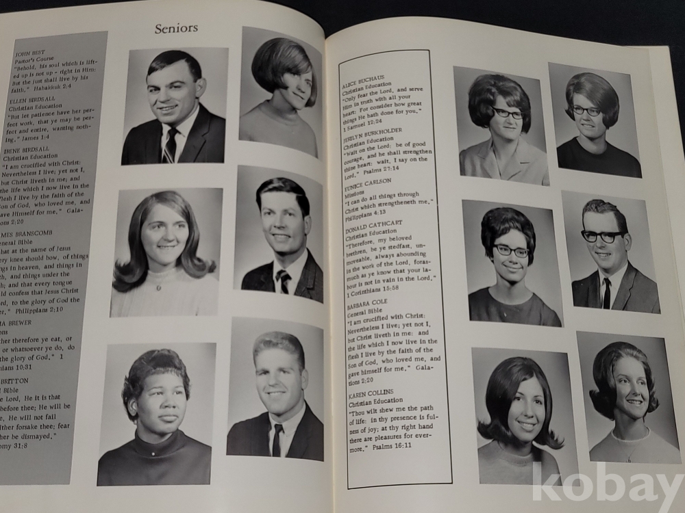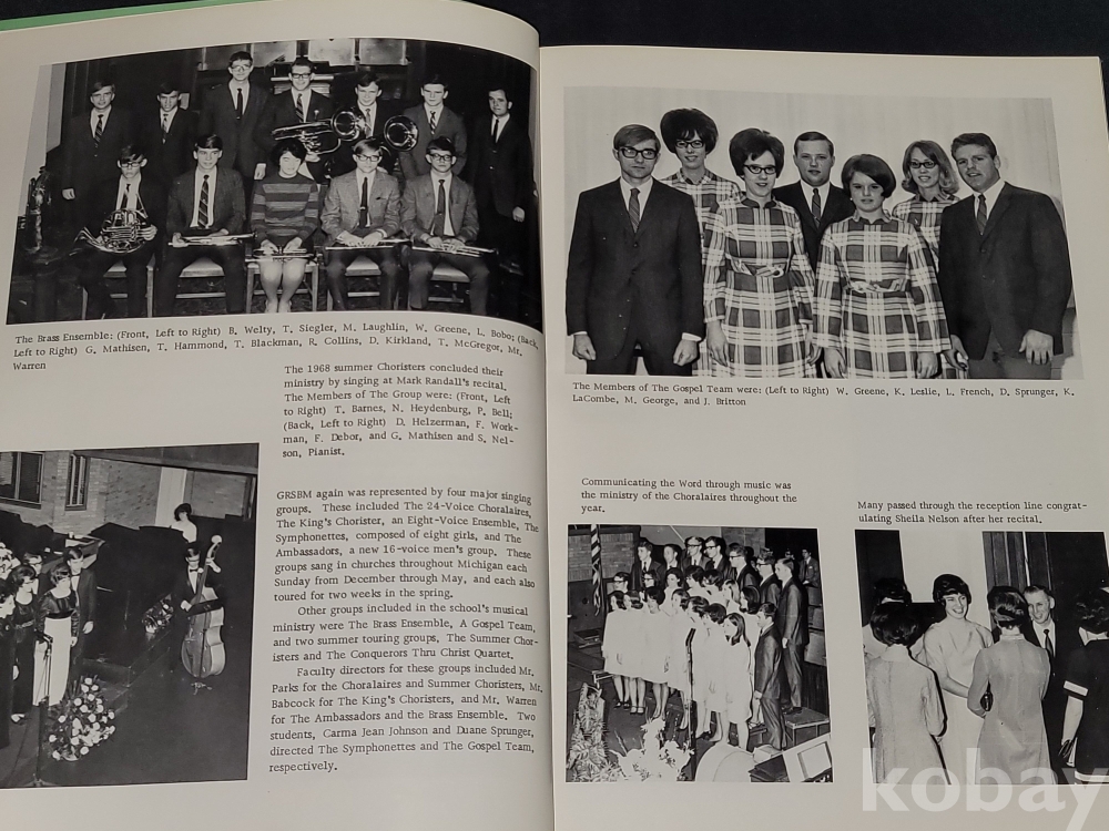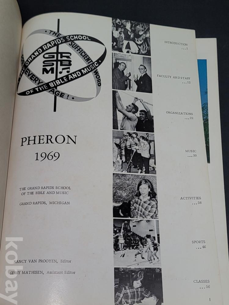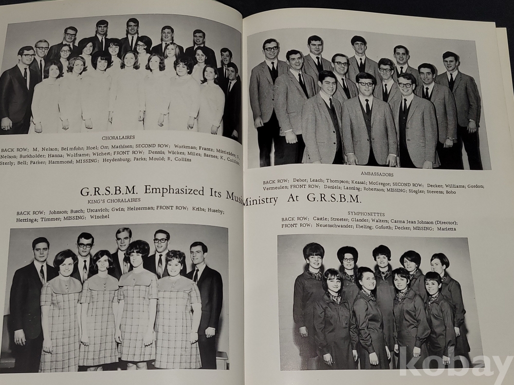 빈티지 외국 졸업앨범 1969년 그랜드 래피즈 성경 및 음악 학교 졸업앨범입니다.