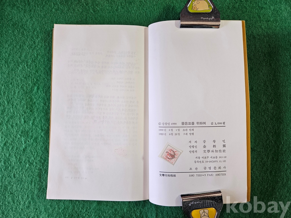 1] 품명 : 강창민 시집 " 물음표를 위하여 " - 문학과지성 시인선 85