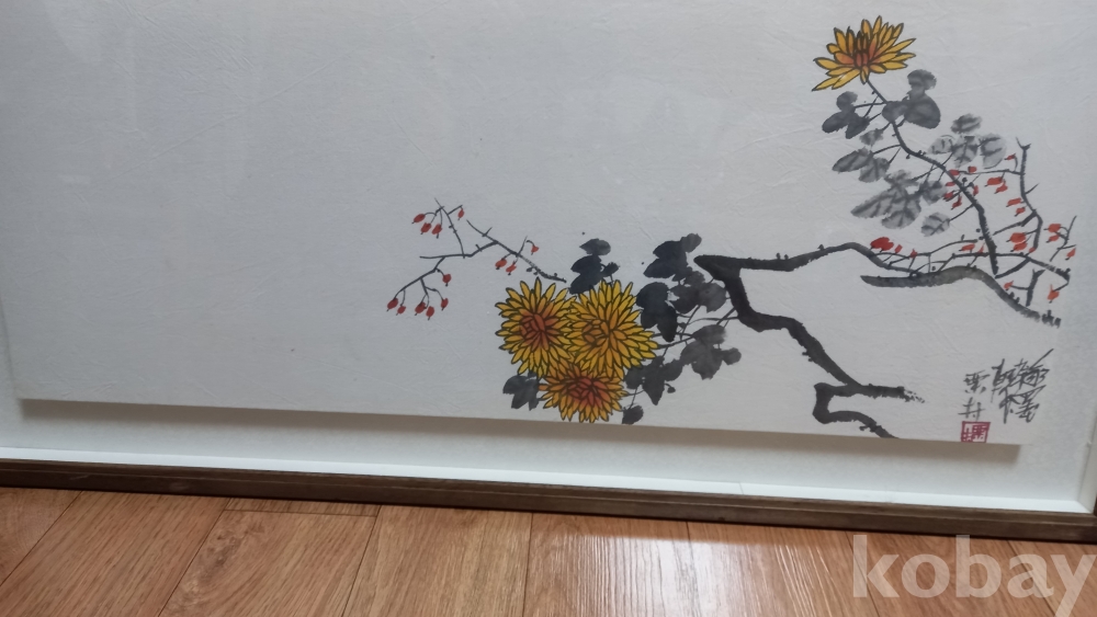 율촌 괴석 들국화 그림 1점 입니다