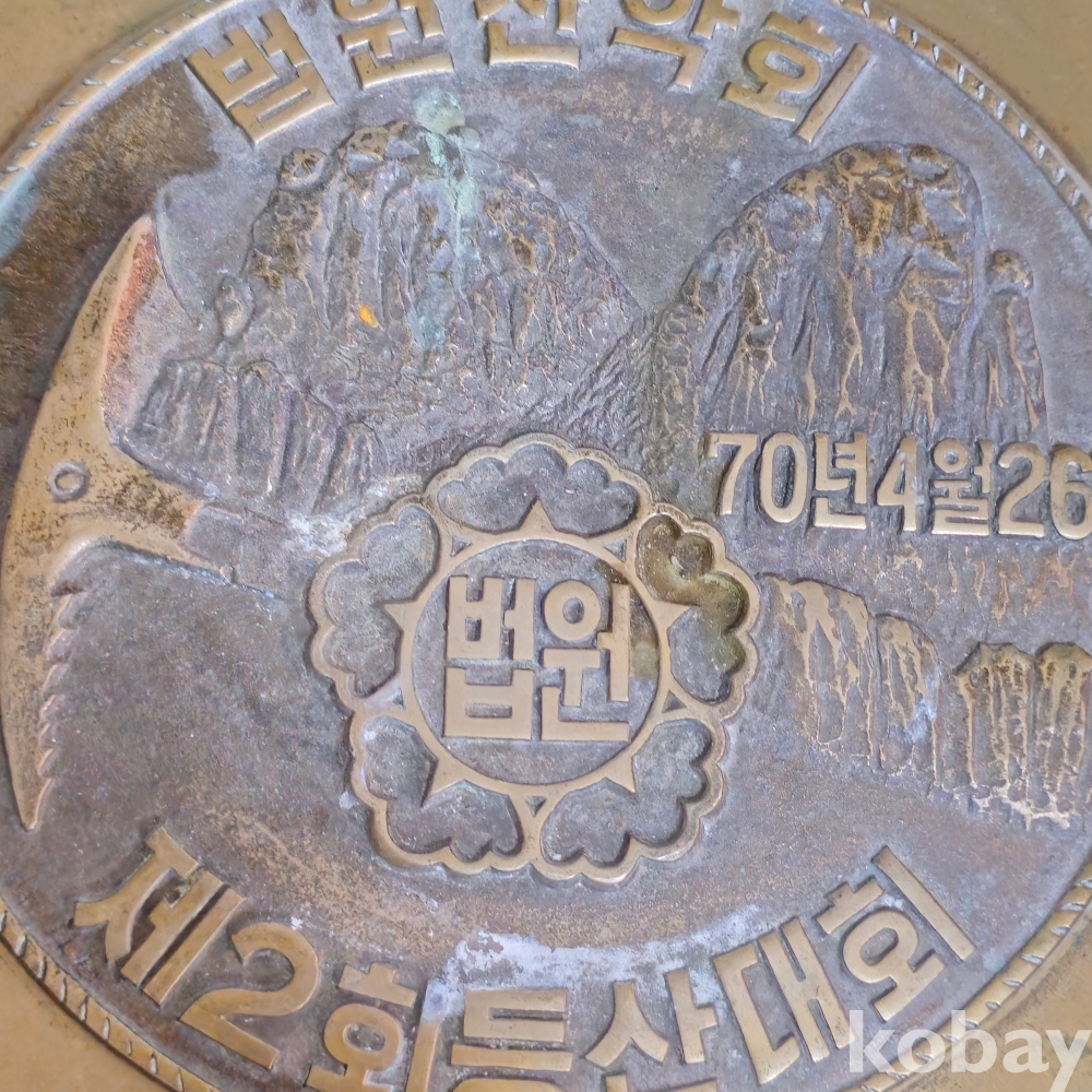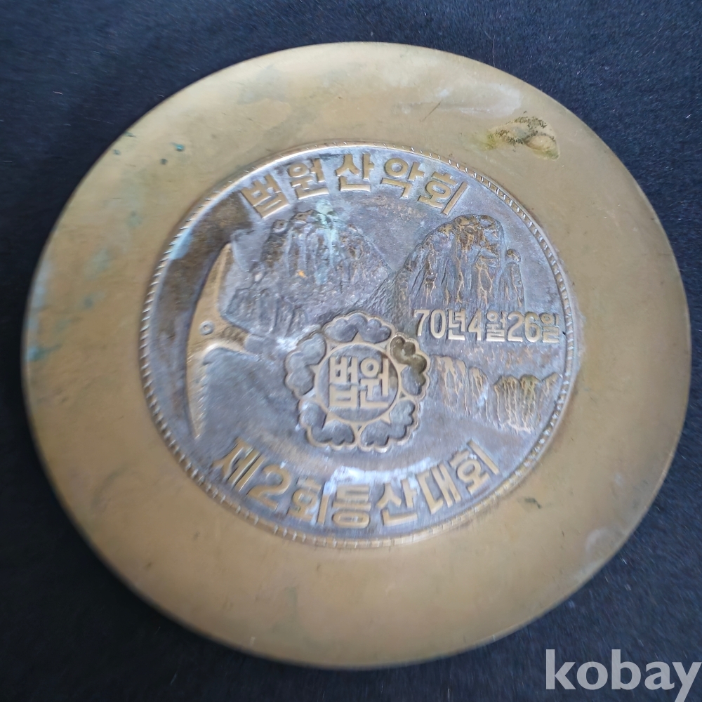 (((근현대사자료/등반자료))) 1970년 법원산악회 제22회 등산대회기념 놋쇠 벽걸이 접시