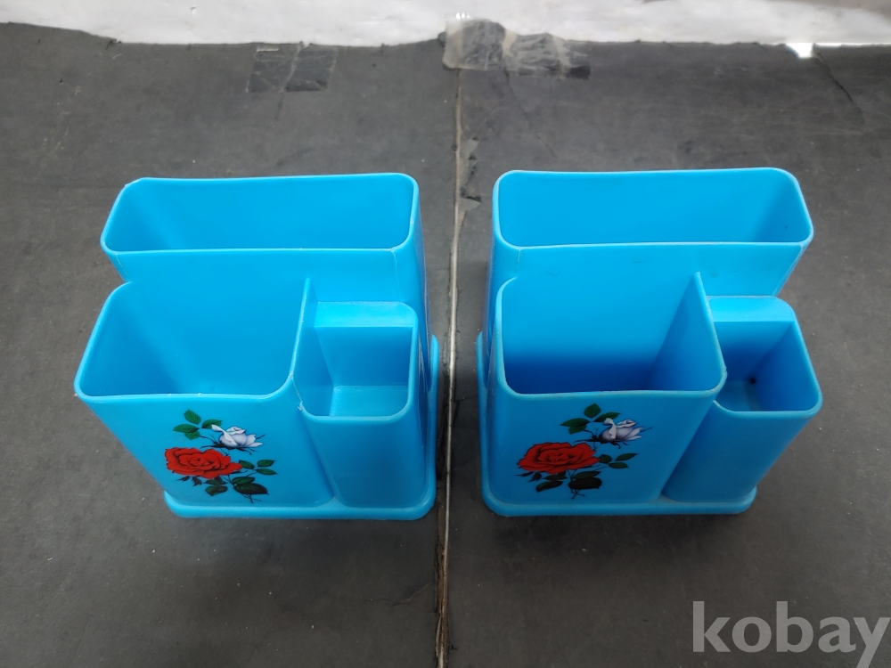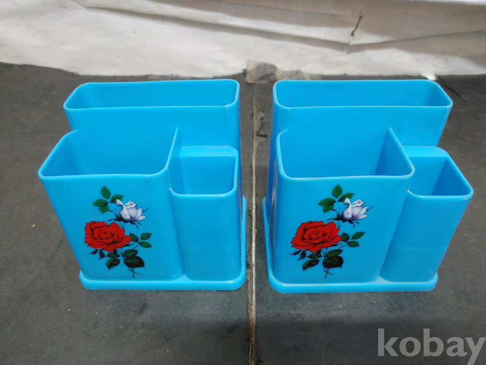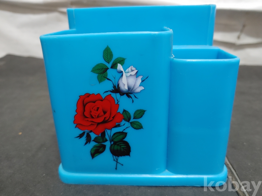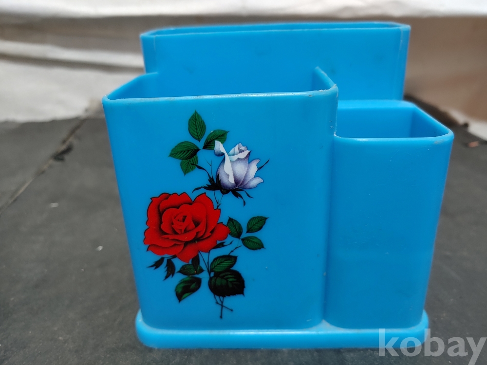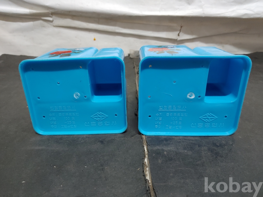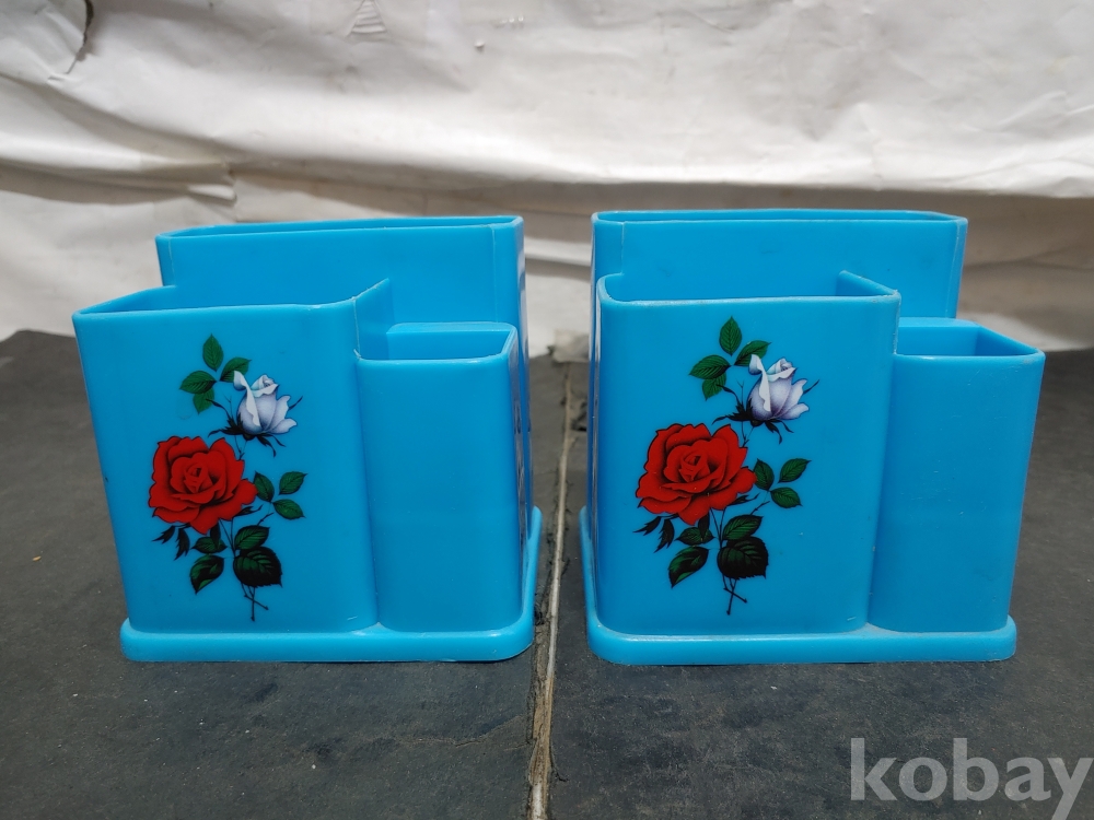 ""예쁜 장미꽃 문양이 있는 옛날 프라스틱 수저통 2개""