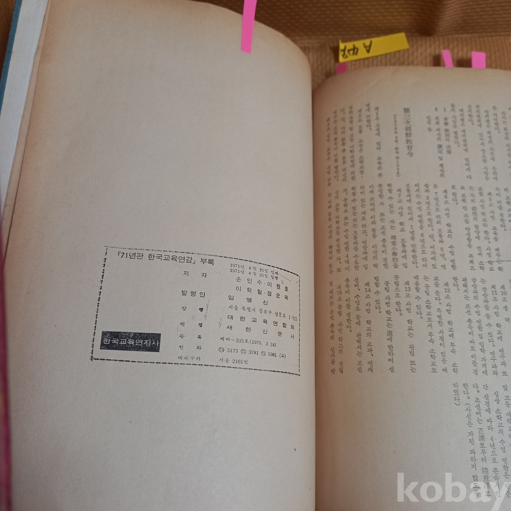 A 4292: 한국교육연지사(한국교육연감 71년판 부록)