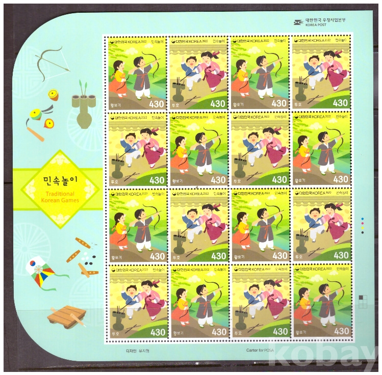(한국전지) 2022.9.15 민속놀이 sheet of 16 MNH