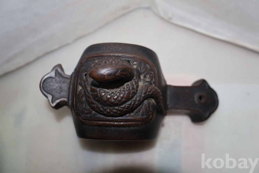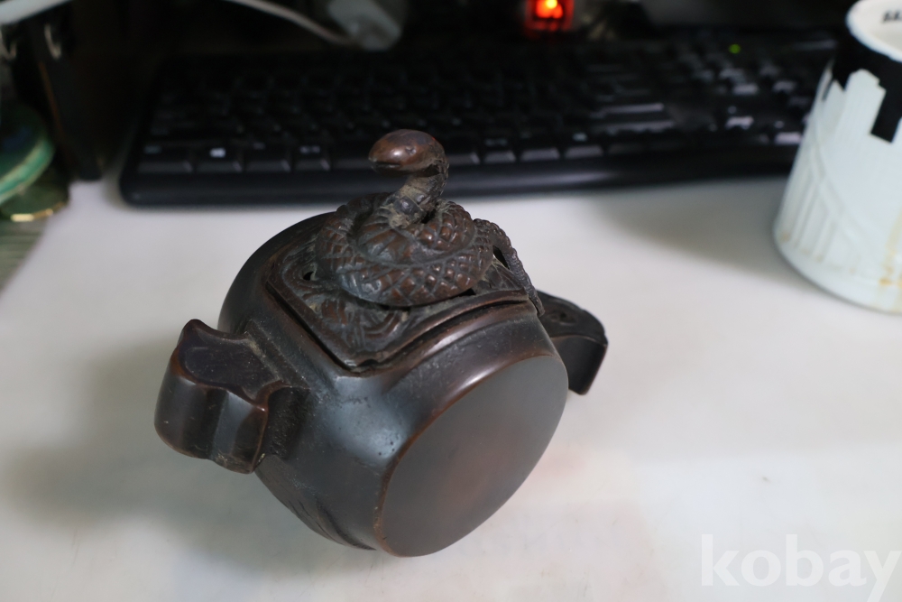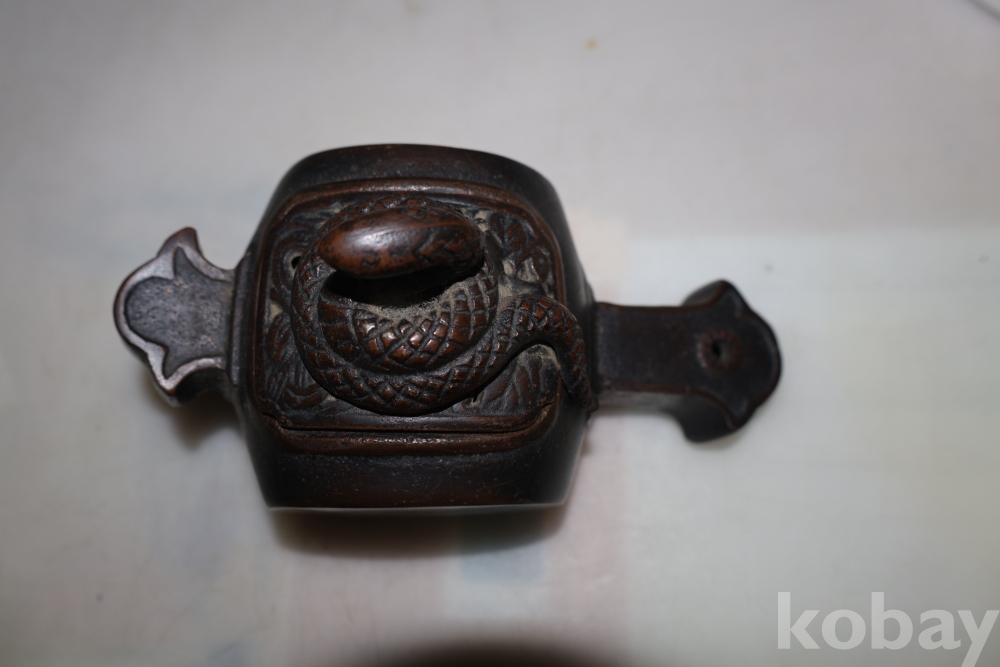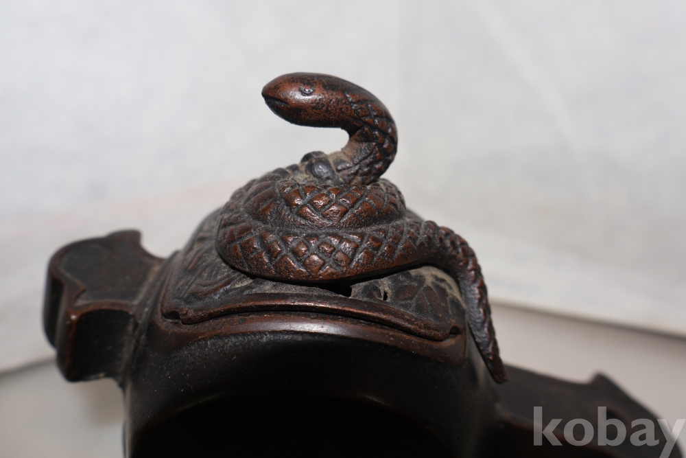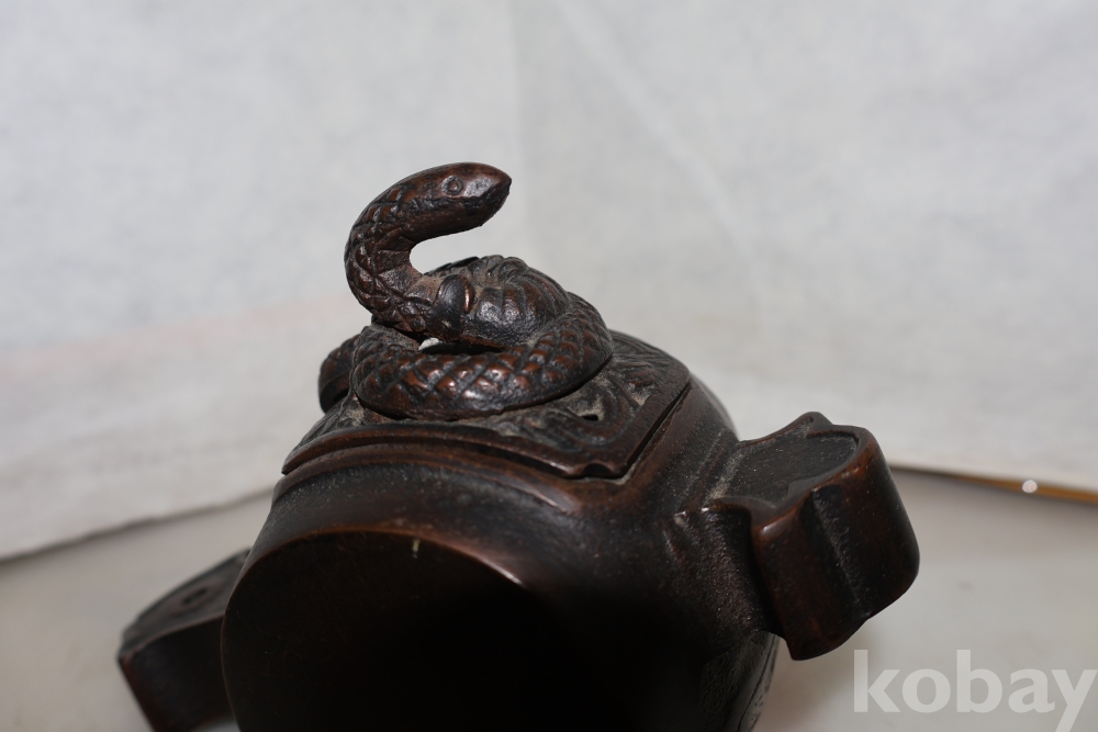 일본 특유의 디자인을 가진 청동 향료 임니다 뱀의 표현 복망치의 표현 한손으로 들기 힘든 무개감 등등 일본 금속공예의 정수를 보여 주는 명품 임니다