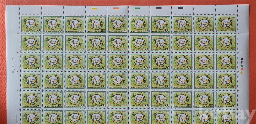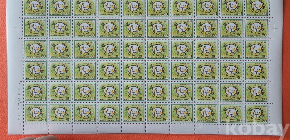 제2차 선장보통 80원 어린이와 꽃 100매 전지 입니다.