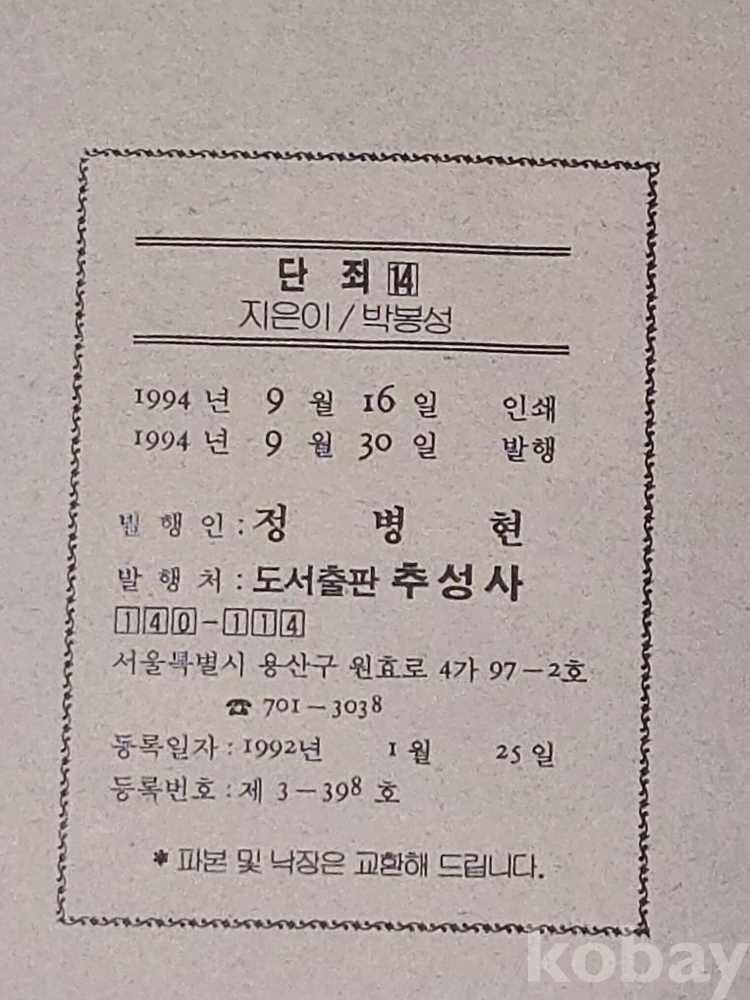1994년 발행 == 박봉성글.그림 / 단죄 == 14권 완질