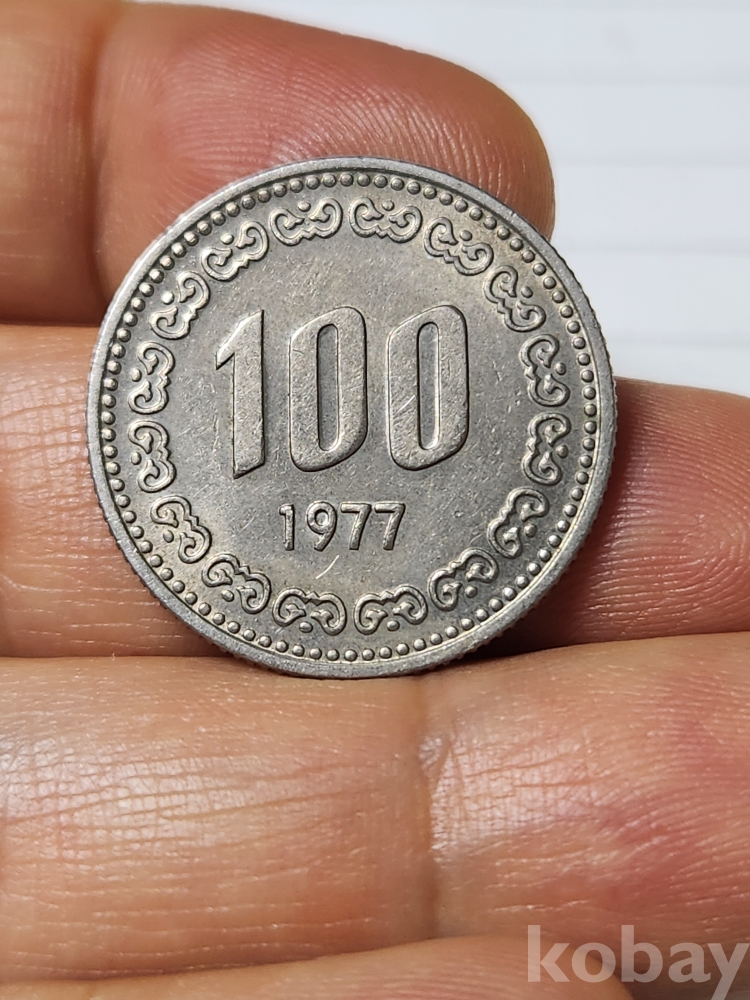 한국주화 특년도 1977년 100원 부분원광도 남아있음 상태가 너무좋음