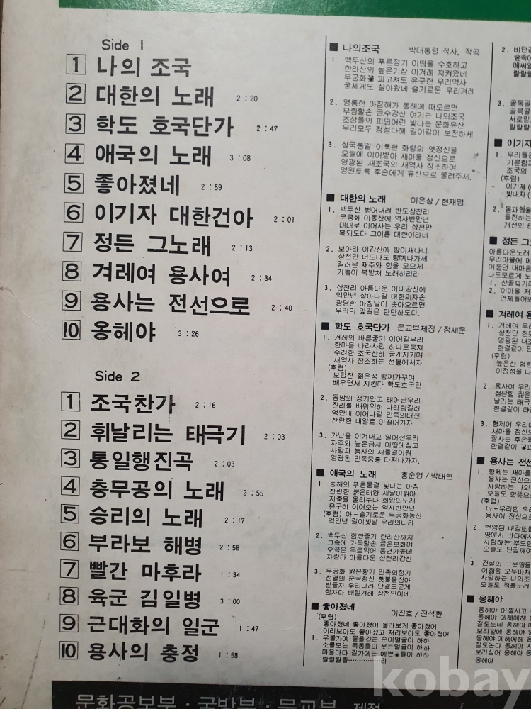 1970년대 국가부처에서 제작, 발매한 건전가요 모음집 음반