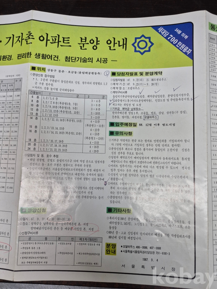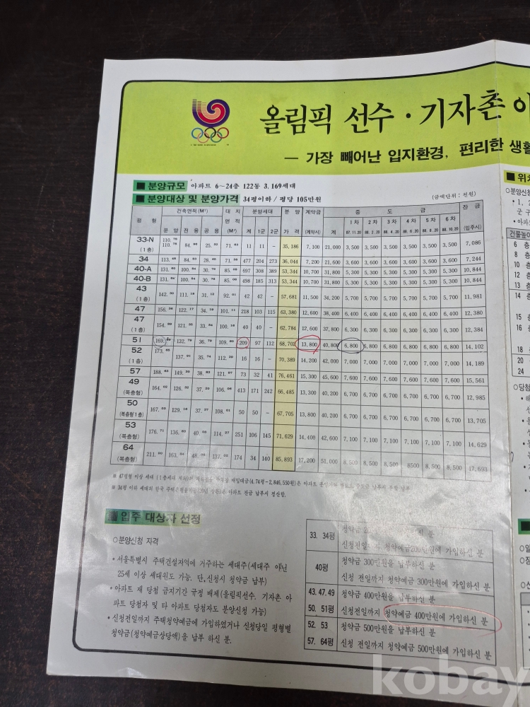 1980년대 서울특별시 올림픽 선수 기자촌 아파트 분양안내 카달로그 1점 58*29