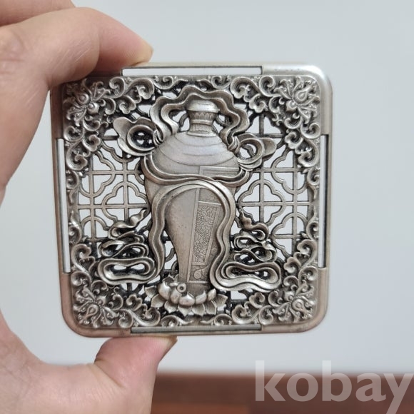 투각 기법으로 문양이 들어간 향로 향합입니다 미사용으로 상태와 완성도가 매우 좋습니다