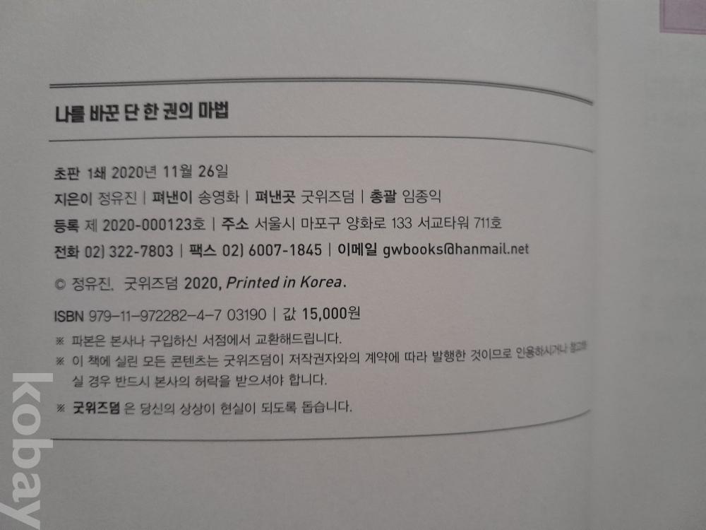 [ 나를 바꾼 단 한권의 마법 ] 독서로 성공과 행복의 인생 혁명을 이루다 / 정유진 지음