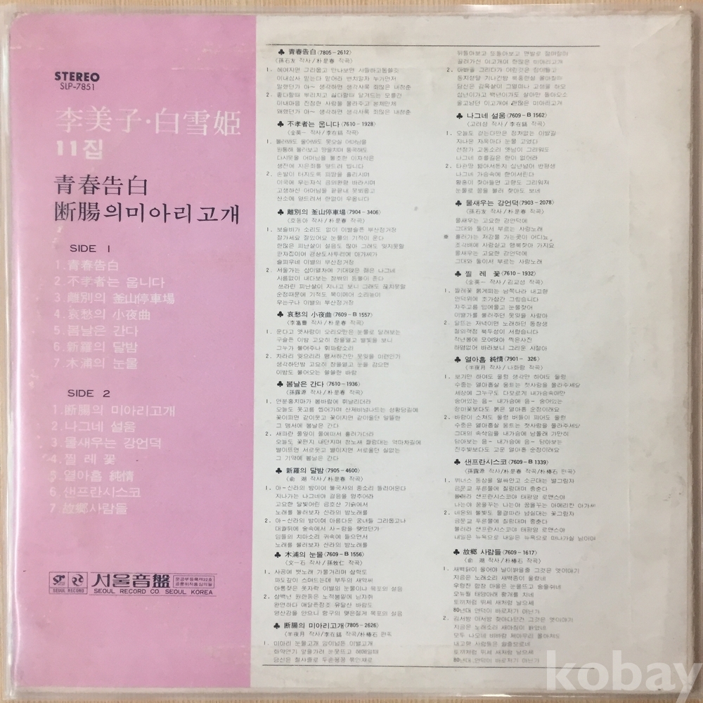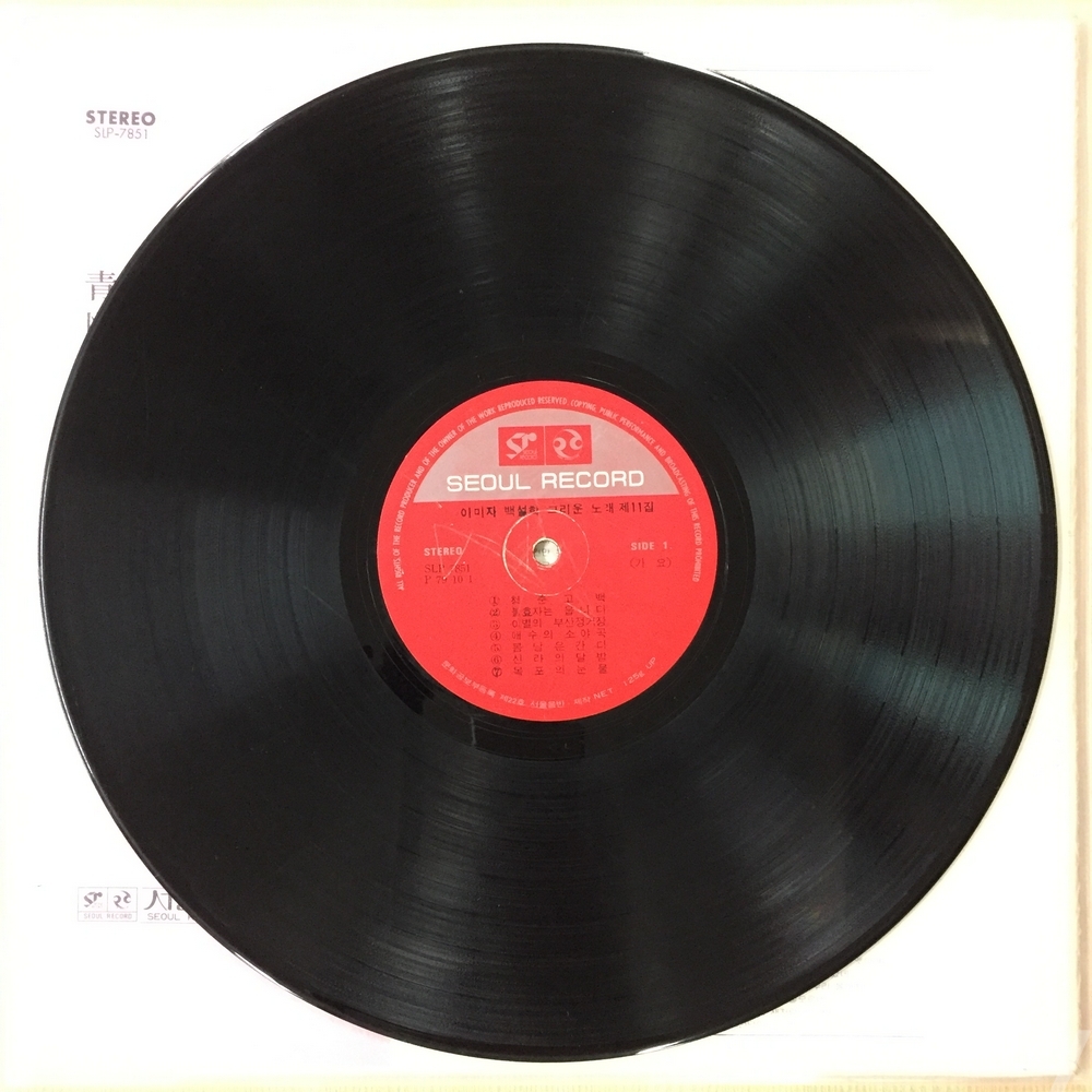 . 가요음반 대부분은 휘어짐이나 손상을 방지하기 위해 무지싱글자킷을 하나 더 사용하여 보관되었던 음반들입니다.