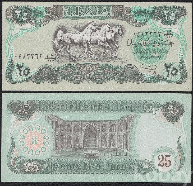 이라크 25디나르 1990년 걸프전쟁 전시 비상 발행본