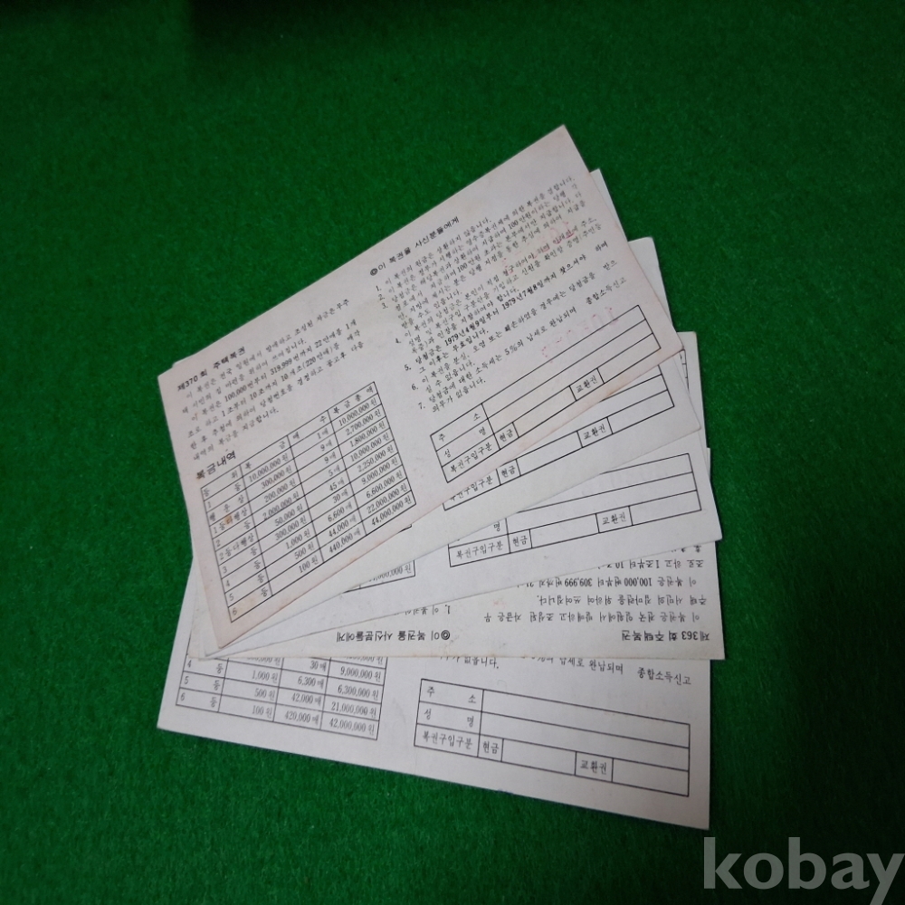 주택복권 5매 362,363,367,368,370회 사용제