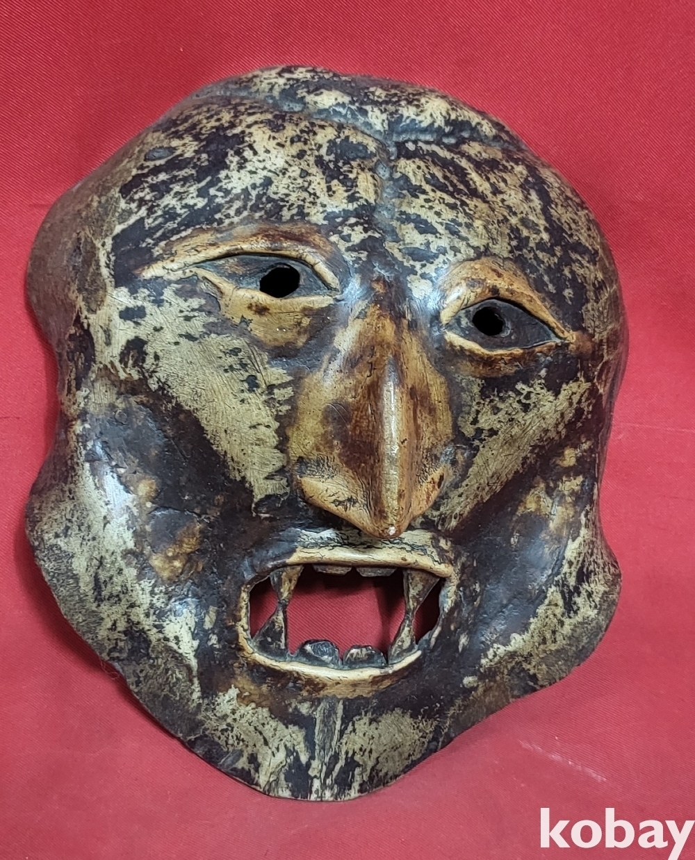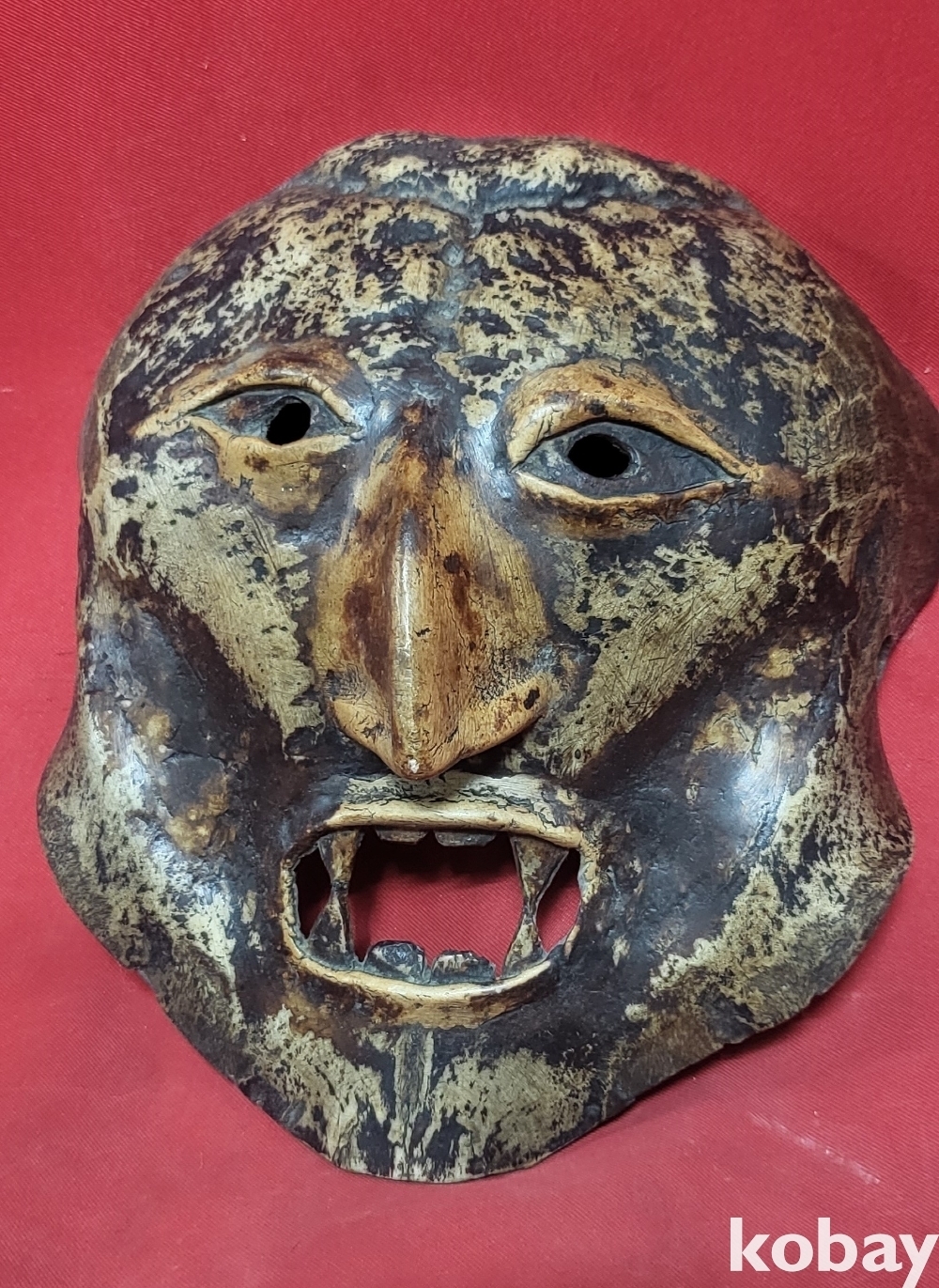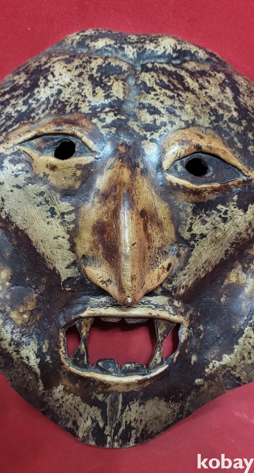 이어 붙임이 없이 통으로 조각되어 완성된 매우 특별한 가면입니다,