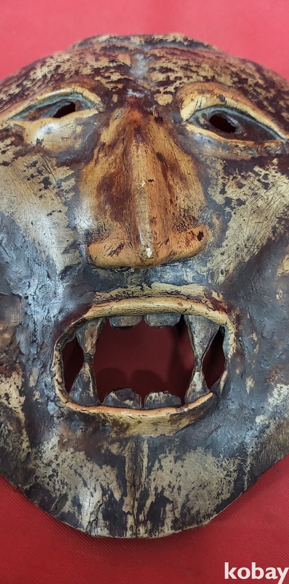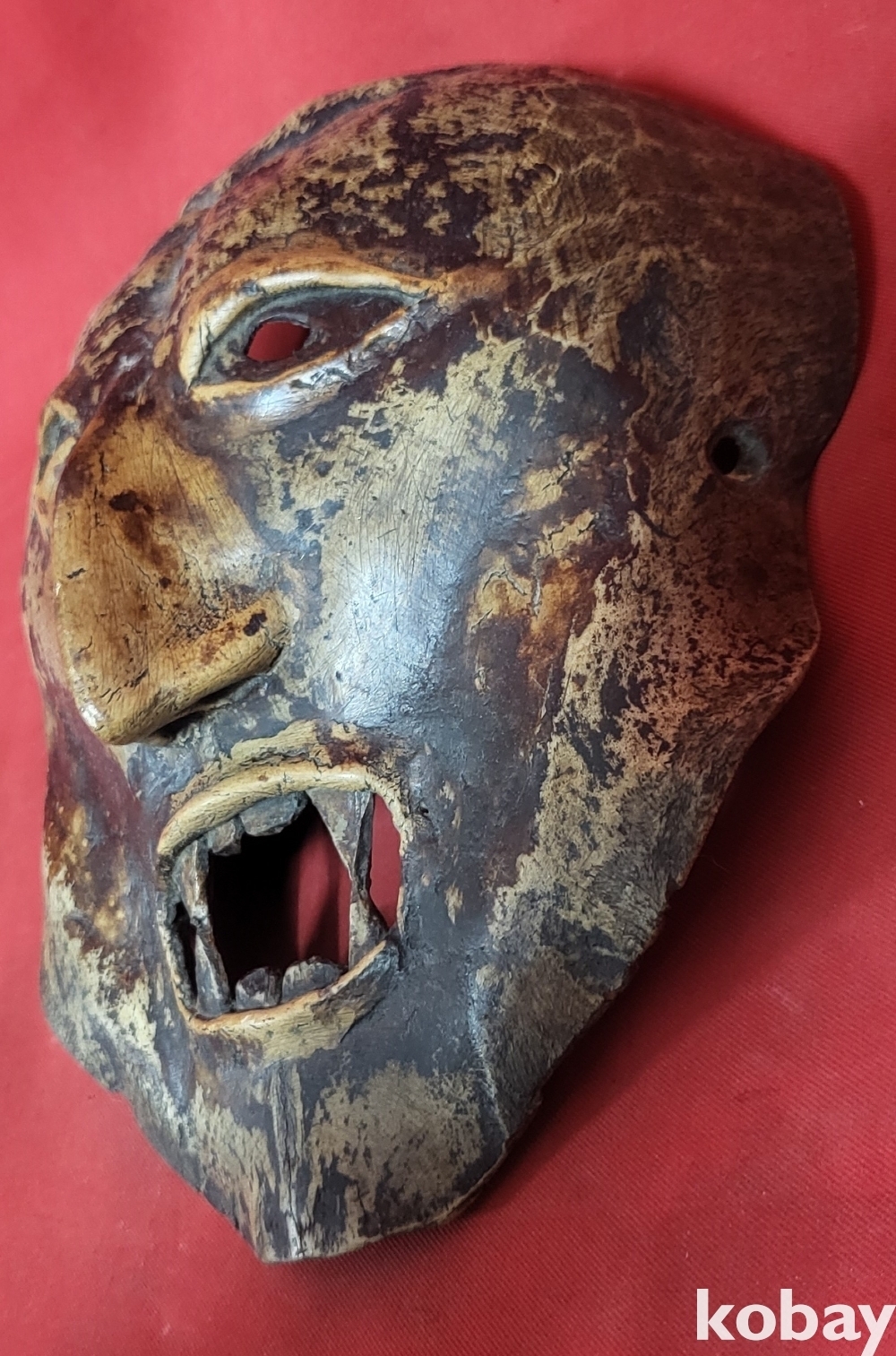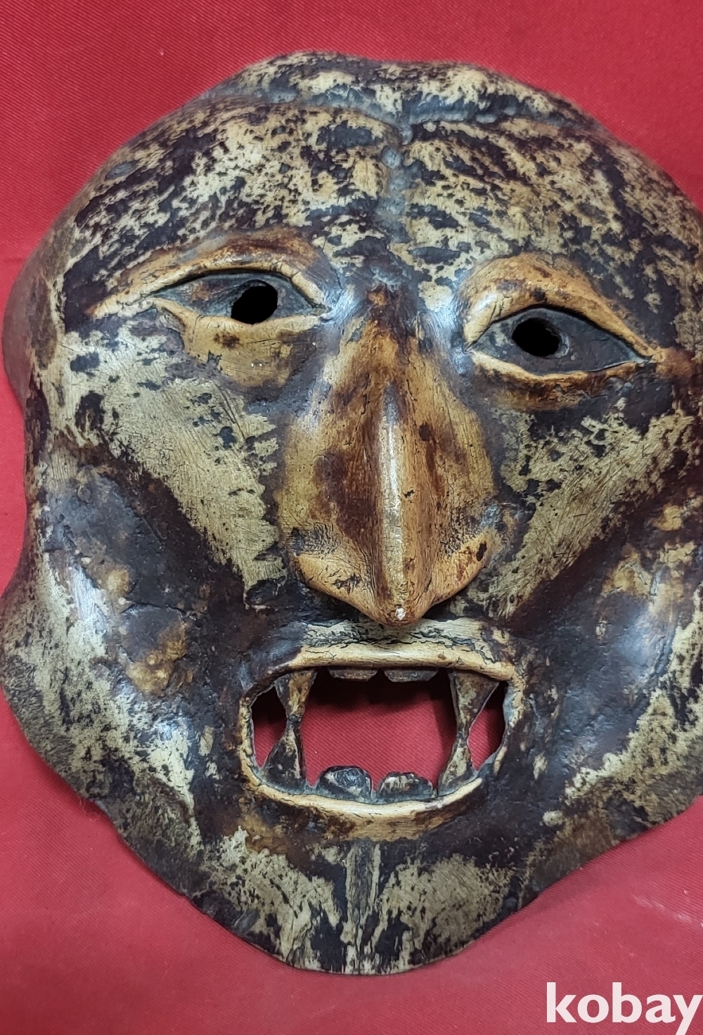 이어 붙임이 없이 통으로 조각되어 완성된 매우 특별한 가면입니다,