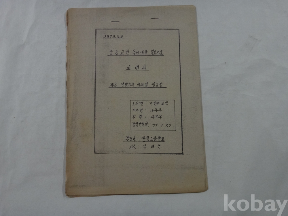 민방위의 의의 및 필요성 (중등교원 독서내용 발표자료, 교련과, 영생고등학교 교사, 1979년)