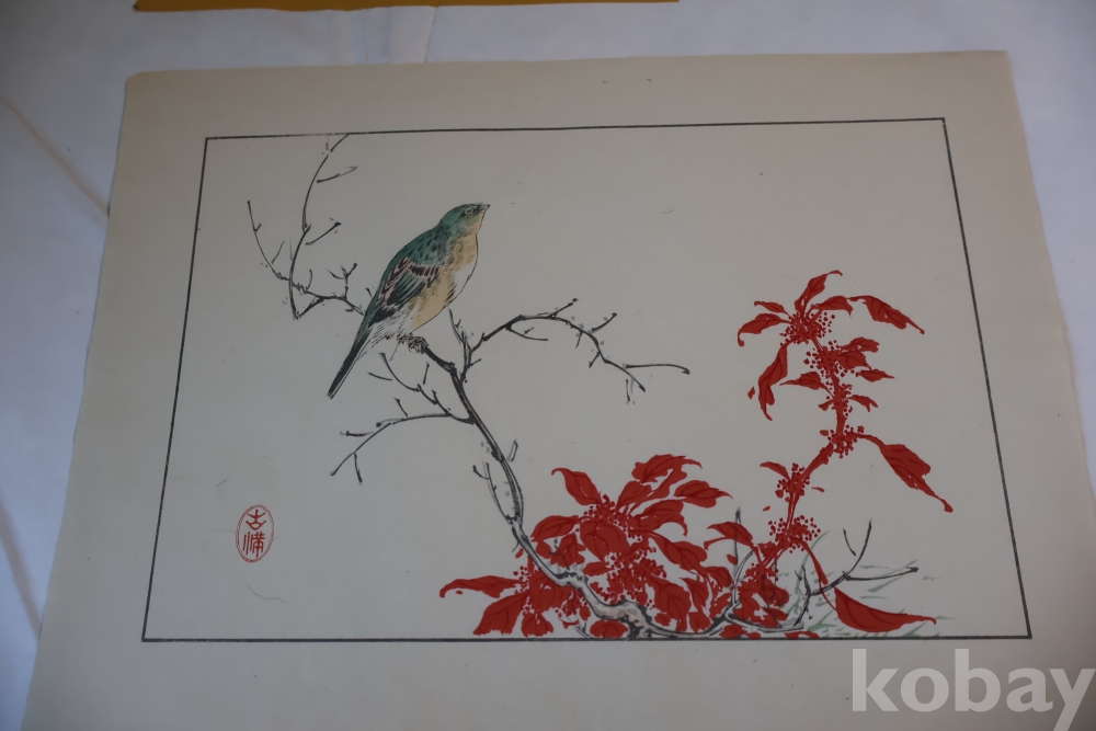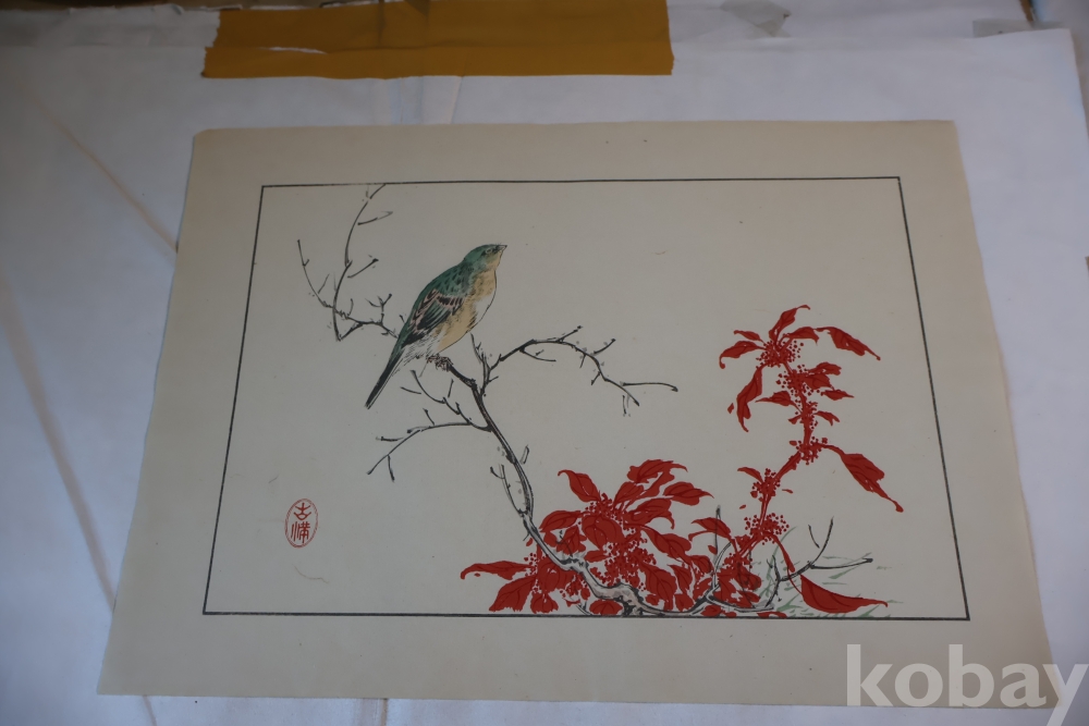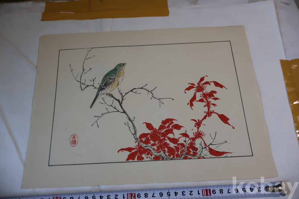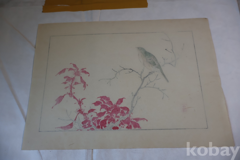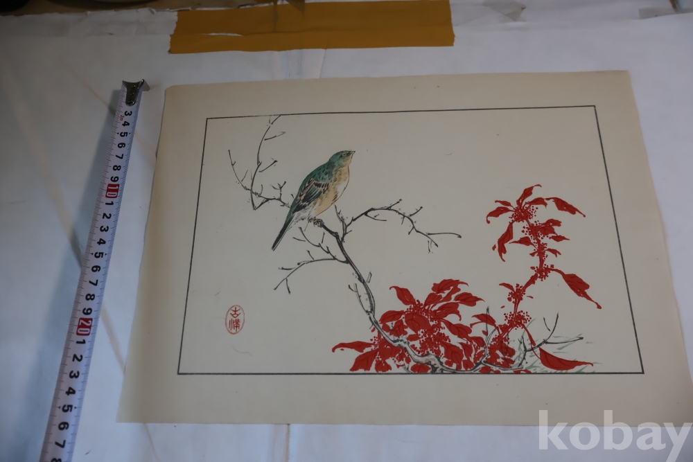 1930 대 목판화 새 임니다 아름다운 디자인 구도 섬세 함을 가진 명화 임니다 화가의 낙관이 보임니다