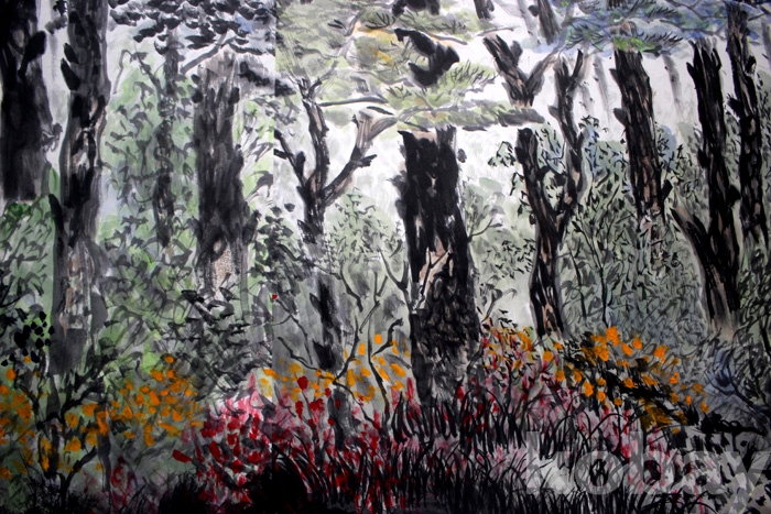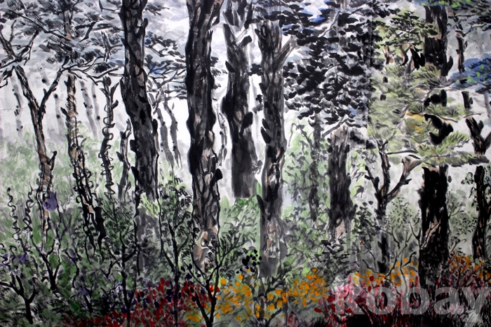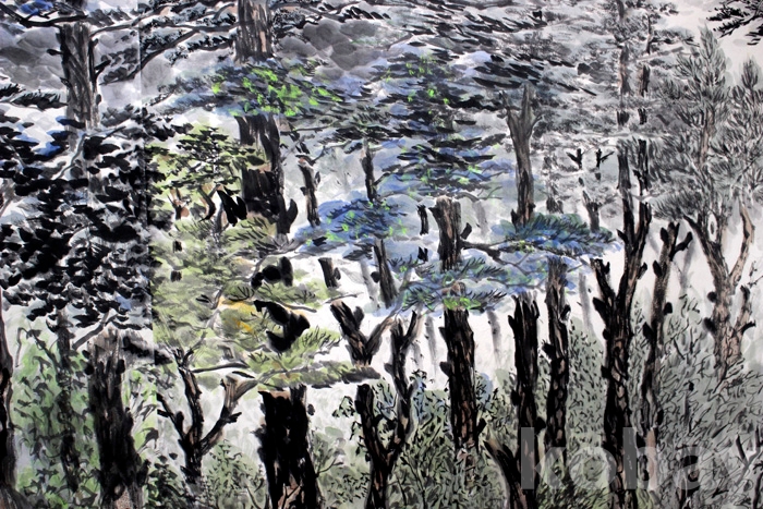 조성숙의 작품 (5) 대형 전지 - 소나무가 우거진 숲 속의 여름 풍경
