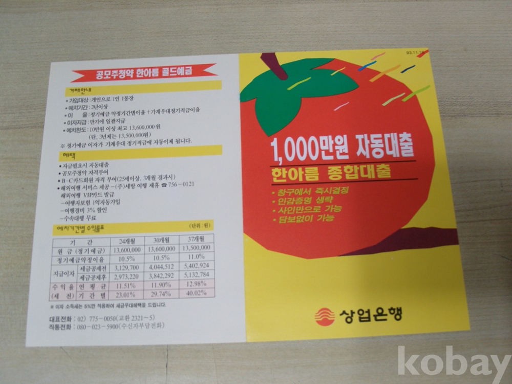 80-90년대 상업은행 전단지,,천만원자동대출,,,93년