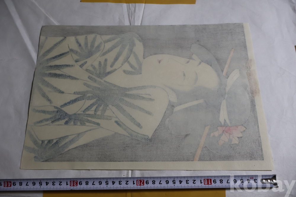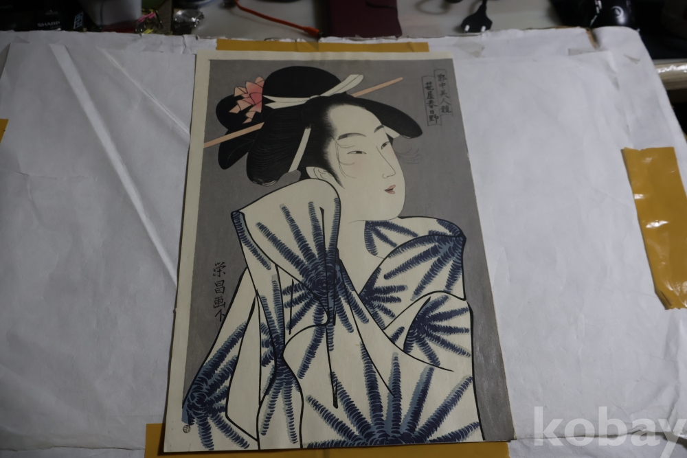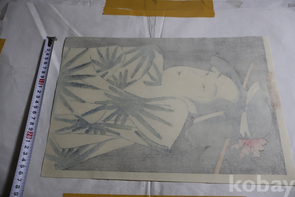 소화중기의 목판화 임니다 무척 귀한 목판화 임니다 섬세 정교 한 명품 임니다 싸구러 일반 프린트 아님니다 옛날 전통 방식으로 만든 목판화 임니 다 분홍 색감의 얼굴 표정이 멋짐니다