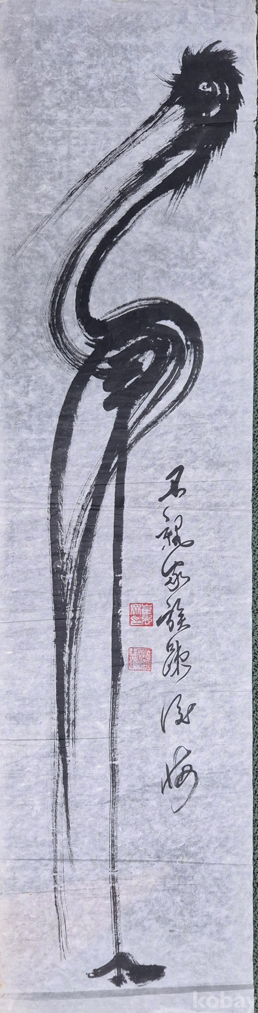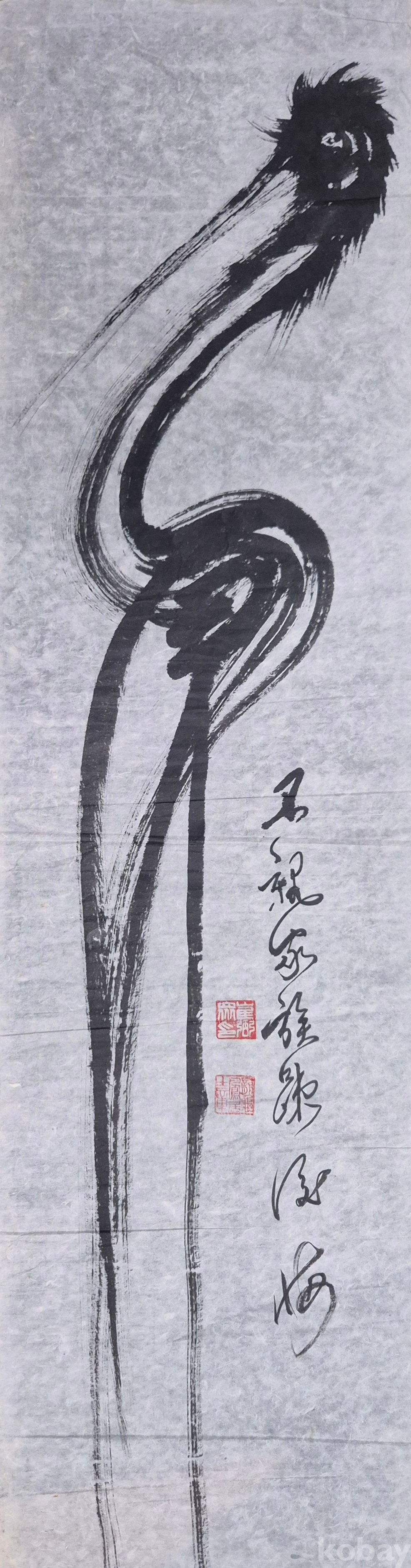 수려한 필력의 추상 학 그림으로 상당한 수준의 작가분 작품 추정되오니 작품 이미지상 수결 및 낙관'등 두루 잘