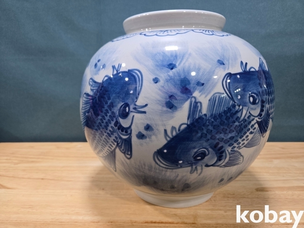 물고기 표현이 있는 달항리 도자기 입니다.