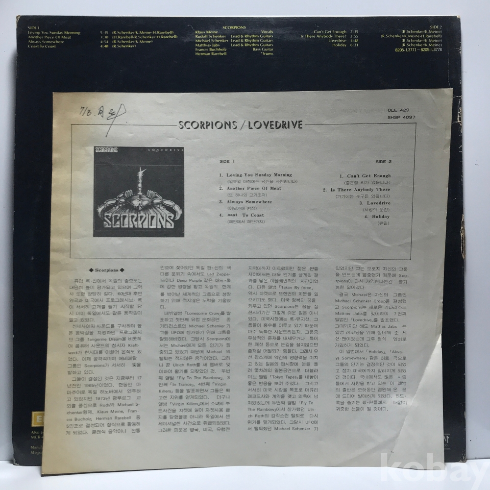 | 자켓상태 | EX : 약간의 마모, 모서리 찢김 존재 | 음반상태 | P : 깨지거나 뒤틀림, 구간 반복 발생 | 발매정보 | 알수없음 | 가사지여부 | 무 |