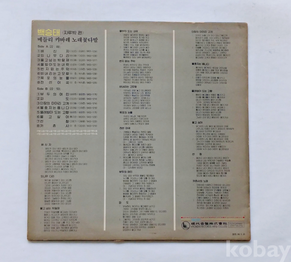| 자켓상태 | EX : 약간의 마모, 모서리 찢김 존재 | 음반상태 | NM : 개봉했으나 미사용급, 스크래치 없음 | 발매정보 | 알수없음 | 가사지여부 | 무 |