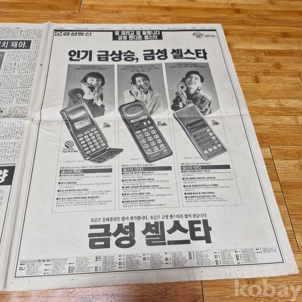 금성통신 금성셀스타 핸디폰 광고 조선일보 93년9월15일 올려드립니다