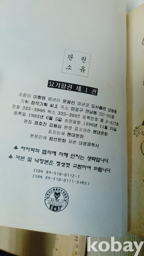 예전 만화왕국 연재작 이향원 작 요기팔권1편 만화책입니다