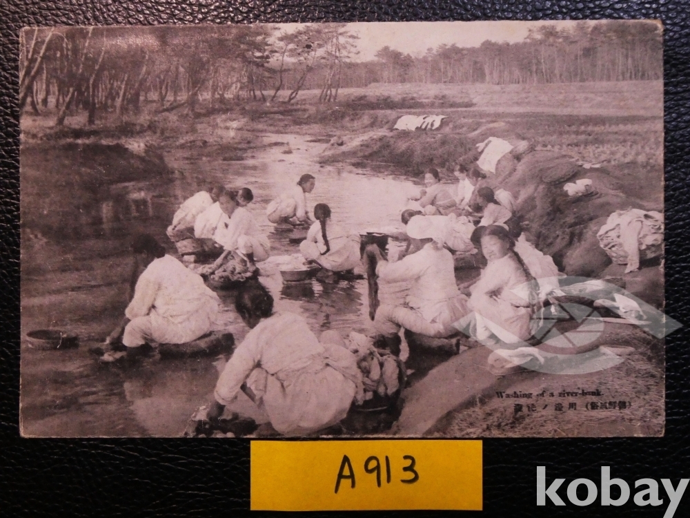 ▣근대한국엽서(진본): 냇가에서 빨래 하는 조선 여인들, 사용 실체, 귀함/1매/역사자료/일제강점기 사진엽서, 그림엽서, 회엽서. A913