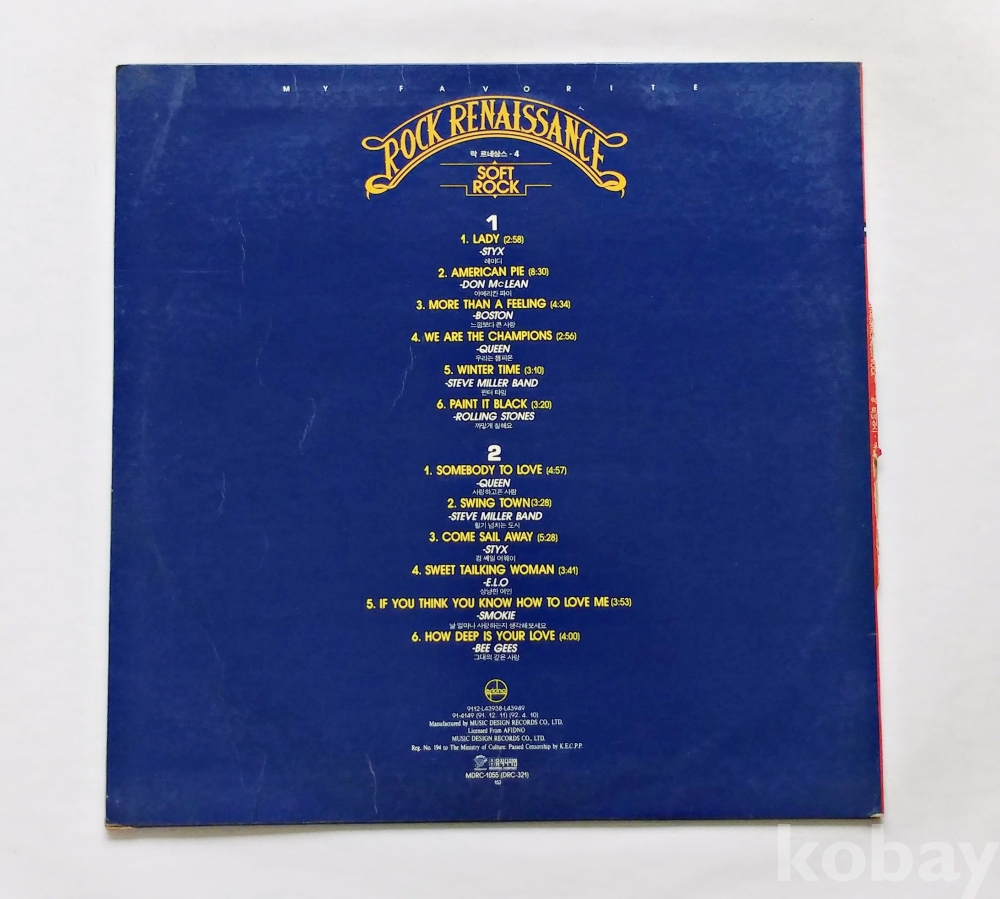 | 자켓상태 | EX : 약간의 마모, 모서리 찢김 존재 | 음반상태 | EX : 재생에 영향 없는 가벼운 기스 존재 | 발매정보 | 알수없음 | 가사지여부 | 유 |