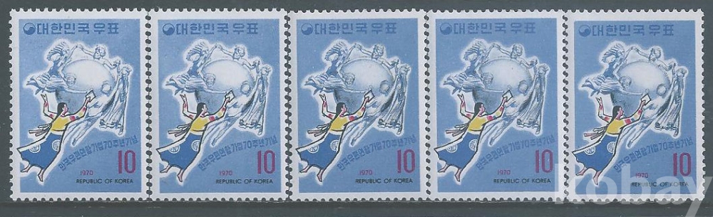 (한국우표1-12)1970년UPU가입70년기념우표5매(미사용제)-MNH, VF
