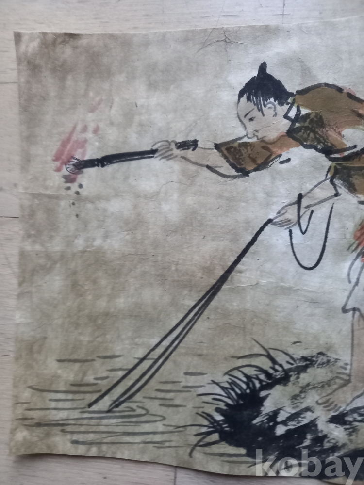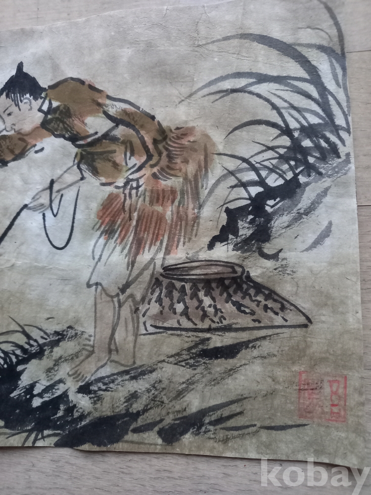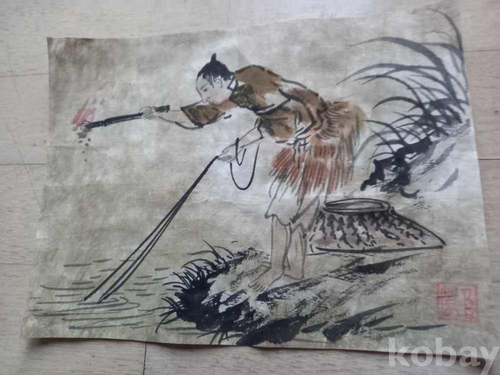 상태 a급 촌노가 햇불들고 고기 잡는 내용입니다 오원 장승업작품 흉내내기는 어렵습니다 그러나 아주 잘그린 작품입니다 진위여부는 미감정 으로 하겠습니다