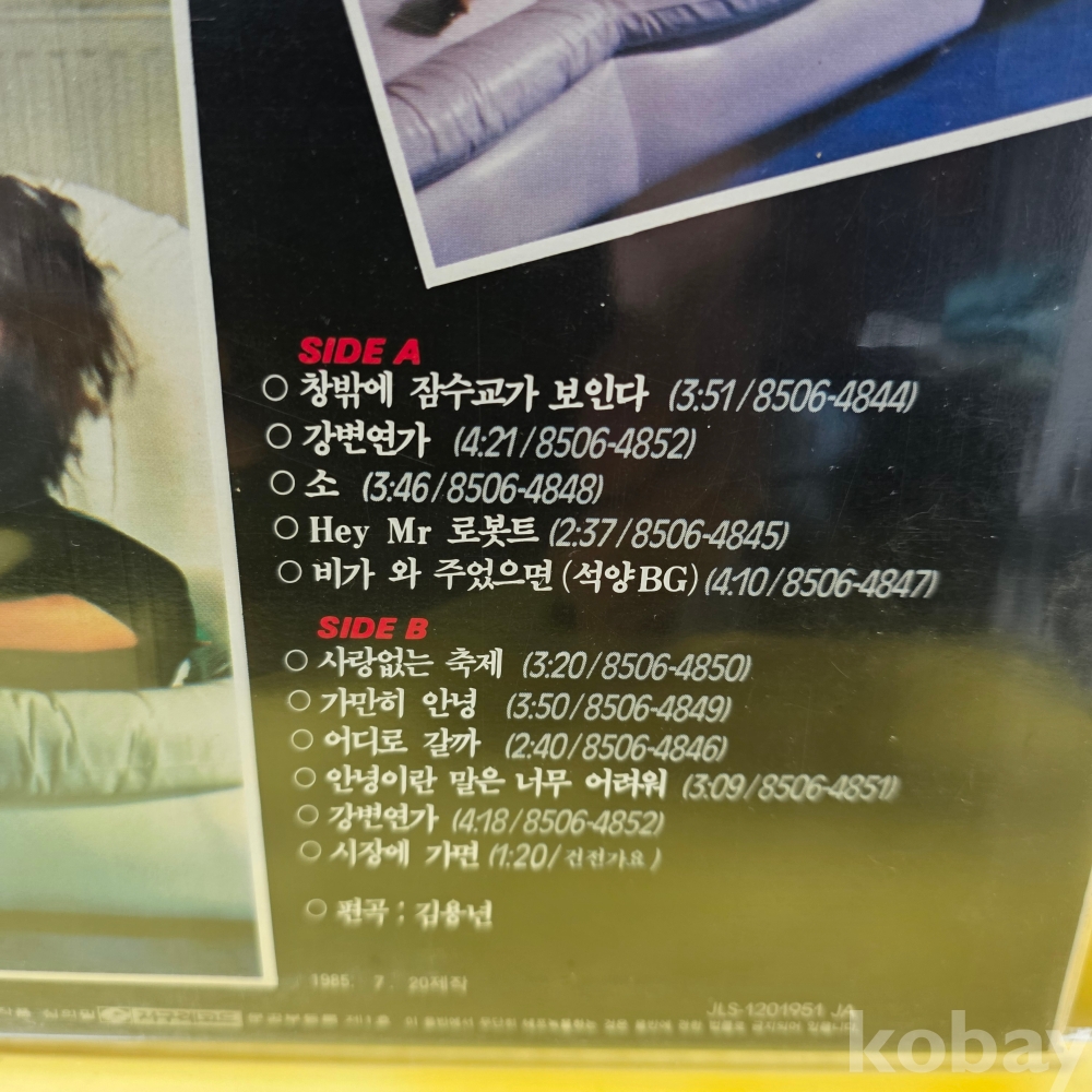 상품 설명 | Side A 1. 창밖에 잠수교가 보인다 2. 강변연가 3. 소 4. Hey Mr 로봇트 5. 비가 와 주었으면 (석양BG) Side B 1. 사랑없는 축제 2. 가만히 안녕 3. 어디로 갈까 4. 안녕이란 말은 너무 어려워 5. 강변연가 6. 시장에 가면 (건전가요) |