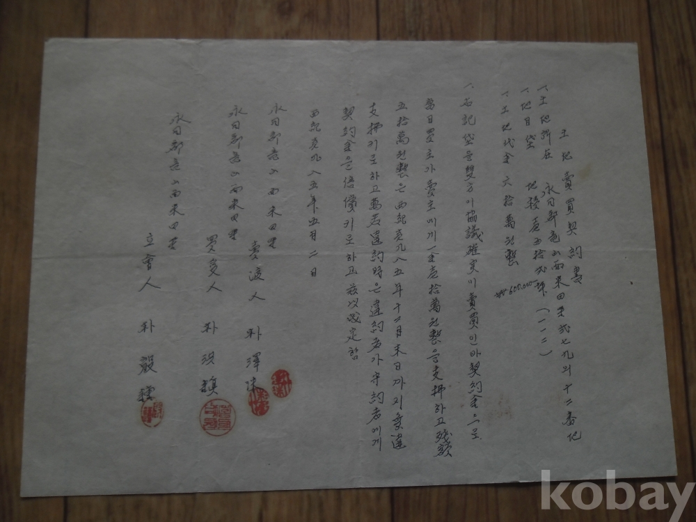1985년 필사 토지매매계약서(영동군)