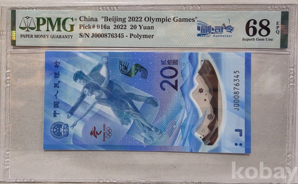 -2022년 중국 동계올림픽 기념 지폐 PMG68 고등급 입니다.