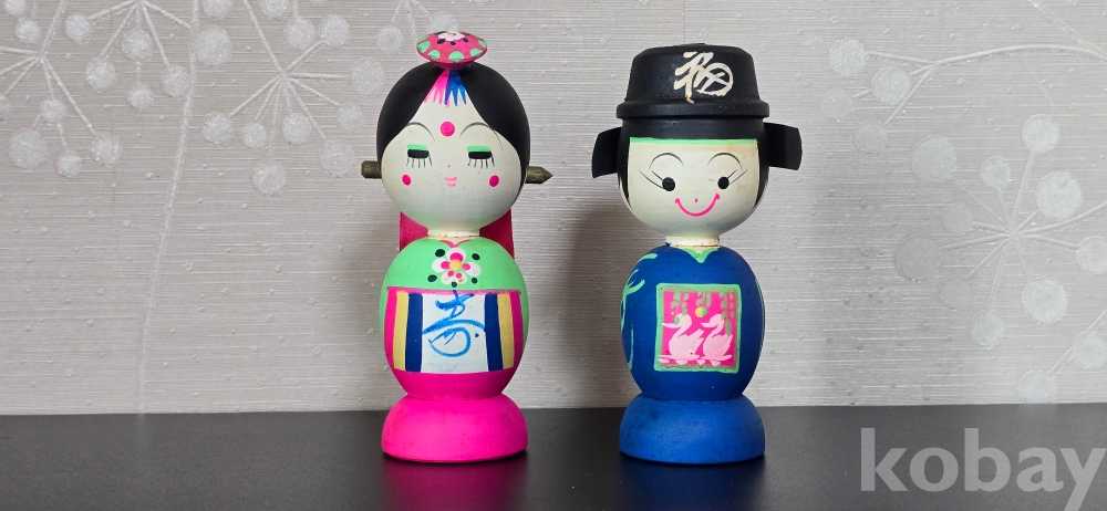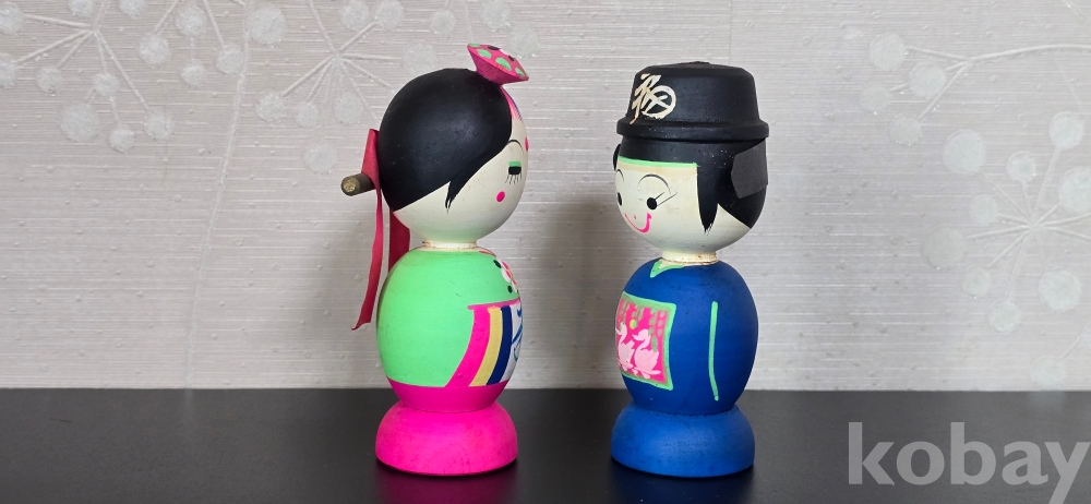 @ 7~ 80년대 혼례복으로 단장한 목각인형 신랑, 신부.