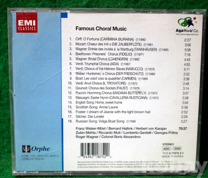 (CD) Famous Choral Music - Orff : O Fortuna / Mozart : Choeur des initi s...