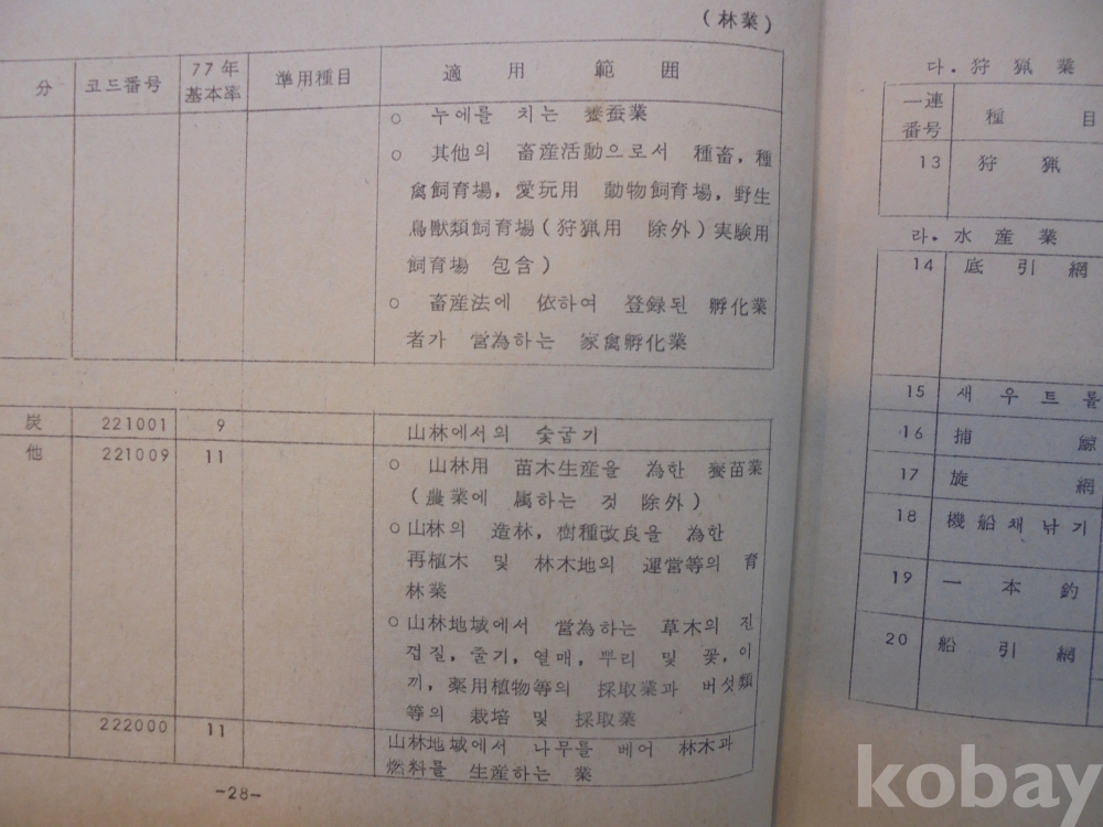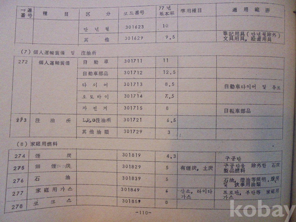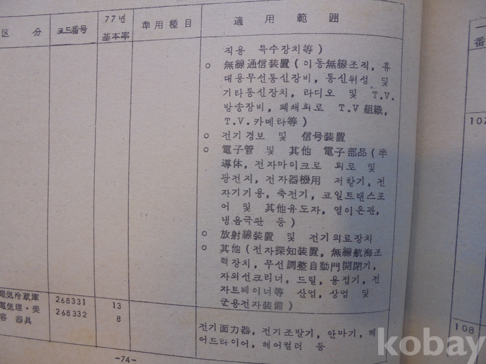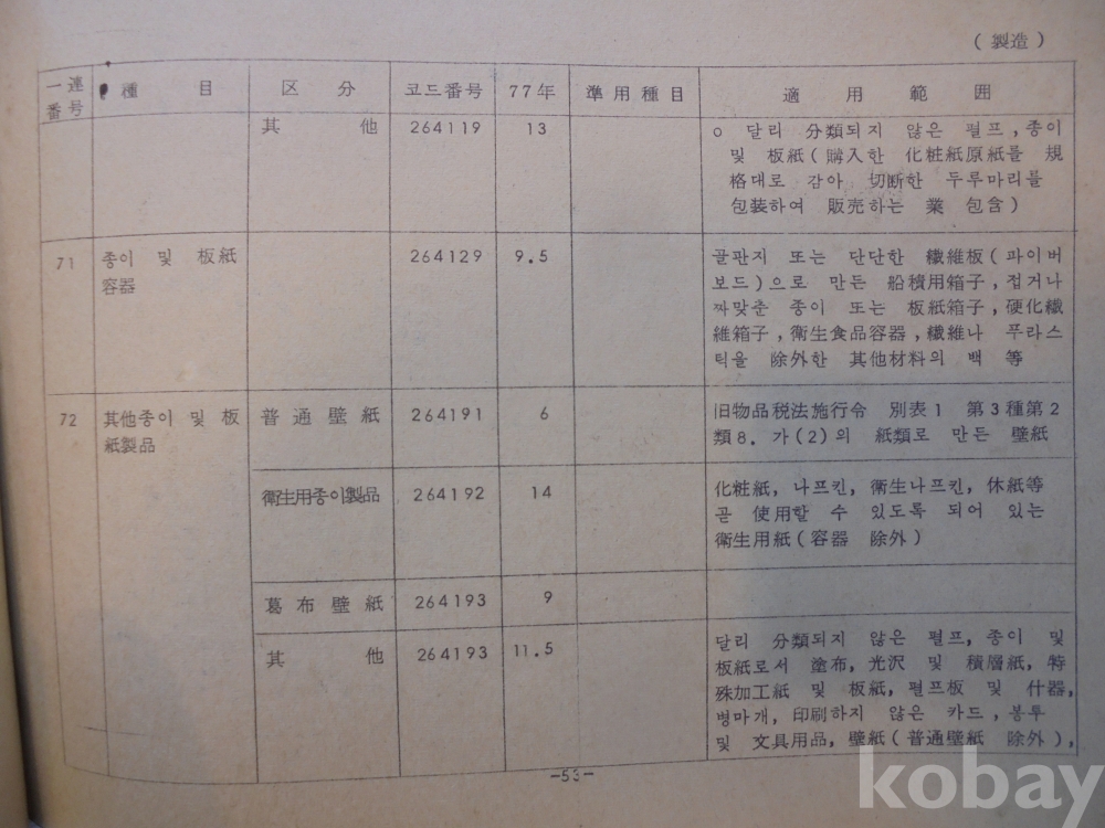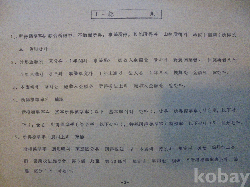 1978년 대한민국 소득표준율표 자료로서 그당시 물가와 시대상이 기록된 극희귀근대사 자료입니다.
