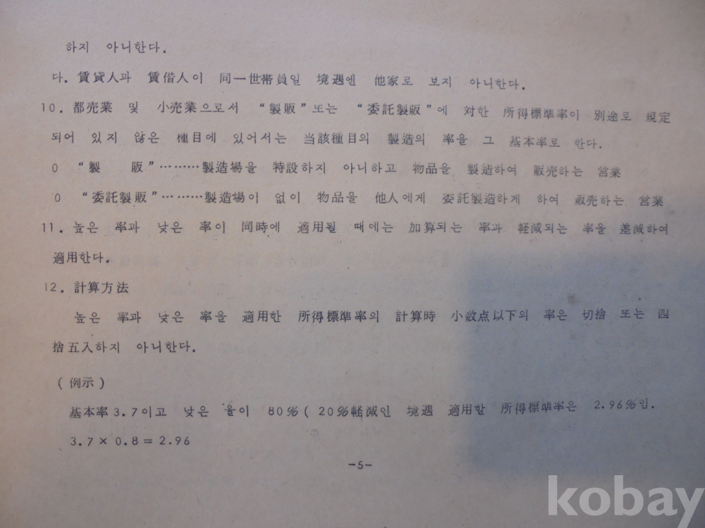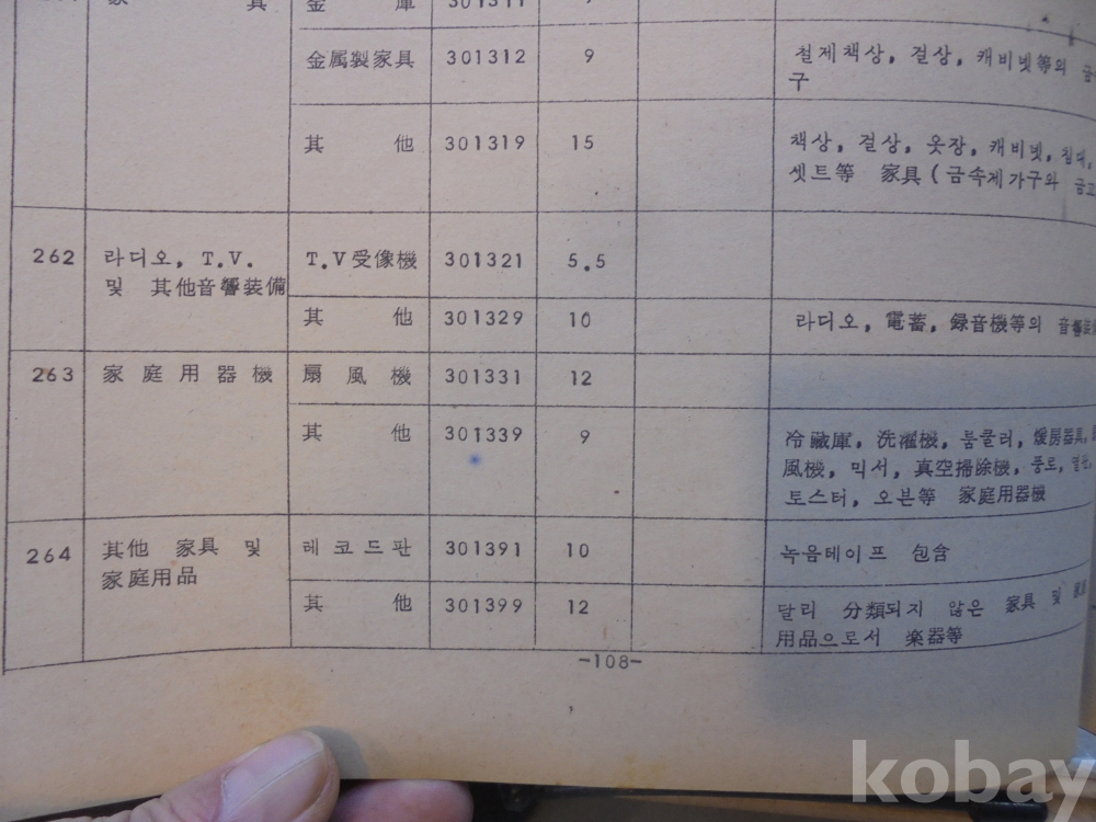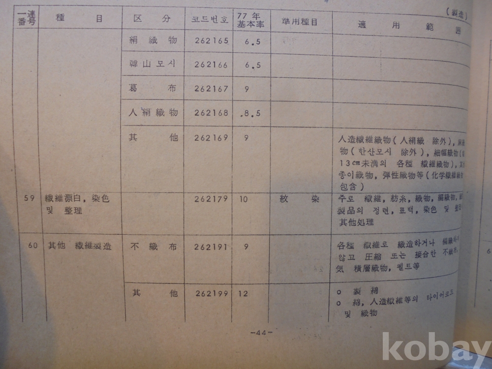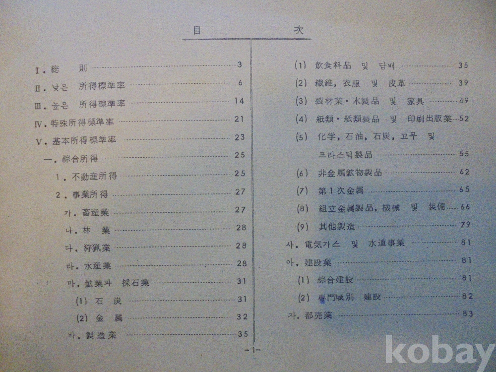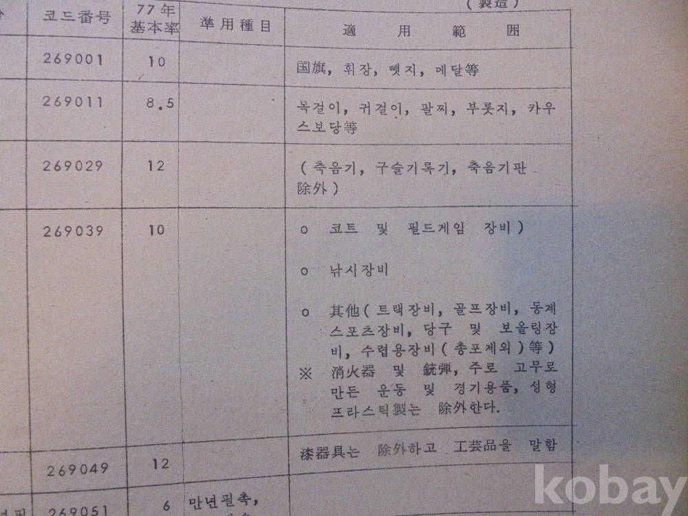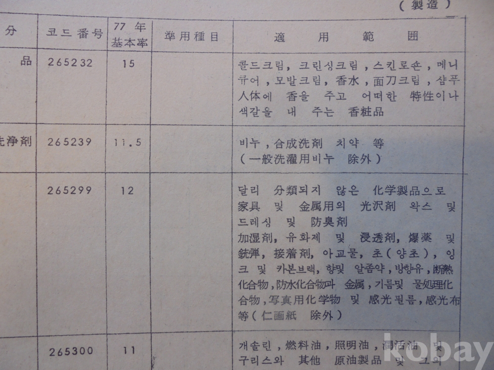 1978년 대한민국 소득표준율표 자료로서 그당시 물가와 시대상이 기록된 극희귀근대사 자료입니다.