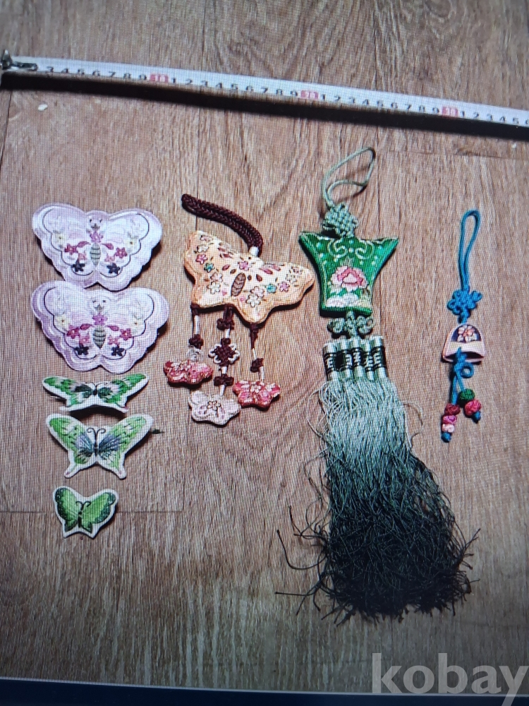 매듭장인 제작한 여인 한복 자수 매듭 노리개 3점과 나비 브롯지 5점 입니다.