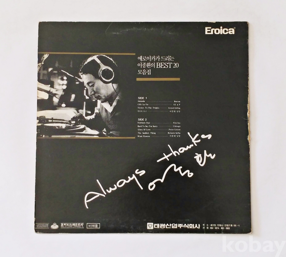 | 자켓상태 | EX : 약간의 마모, 모서리 찢김 존재 | 음반상태 | NM : 개봉했으나 미사용급, 스크래치 없음 | 발매정보 | 알수없음 | 가사지여부 | 무 |