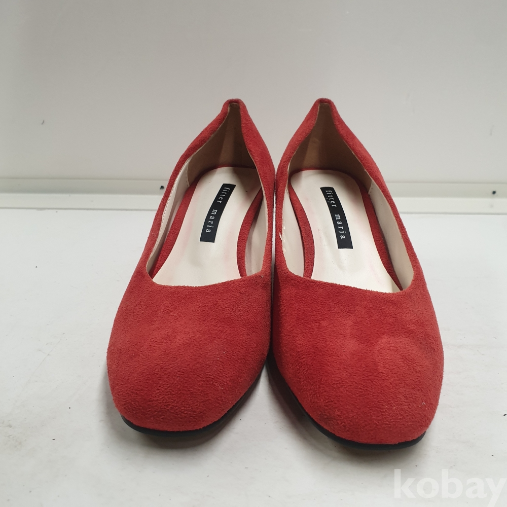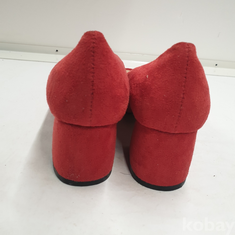 [*천원행복*] S - 3- 0819 여성 구두 (스웨이드 소재, 레드, 38사이즈, 굽높이 - 5cm)